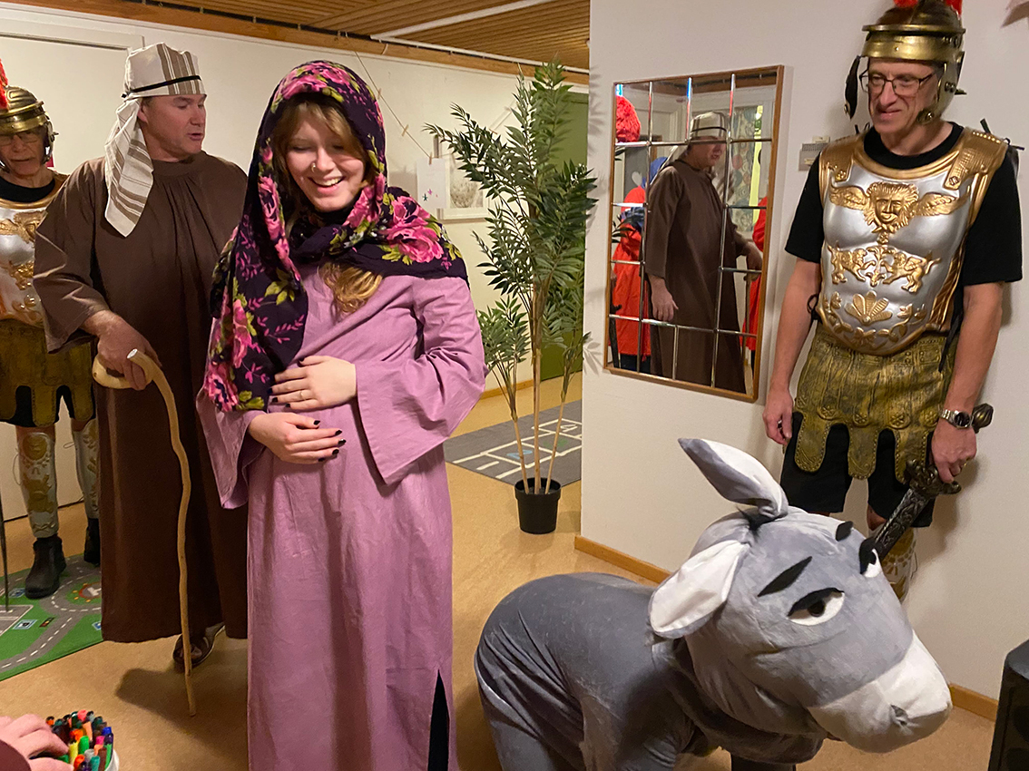 – Besökande barn möter de olika karaktärerna i uppbyggda scener i församlingshemmet. Först så möter barnen jungfru Maria och ängeln Gabriel som kommer för att tala om för Maria att hon skall få ett barn. Barnet ska ha namnet Jesus. Sedan ansluter Josef och åsnan och de beger sig till Betlehem för att låta skattskriva sig. Under vägen till Betlehem möter de soldater, kung Herodes, herdar och de tre vise männen. I stallet i Betlehem så får barnen se krubban och det nyfödda barnet och julvandringen avslutas med att sjunga psalmen ”Nu tändas tusen juleljus” tillsammans, säger församlingspedagog Anne Karlsson från Skillingaryds församling som är nöjd, glad och tacksam för årets julvandring.