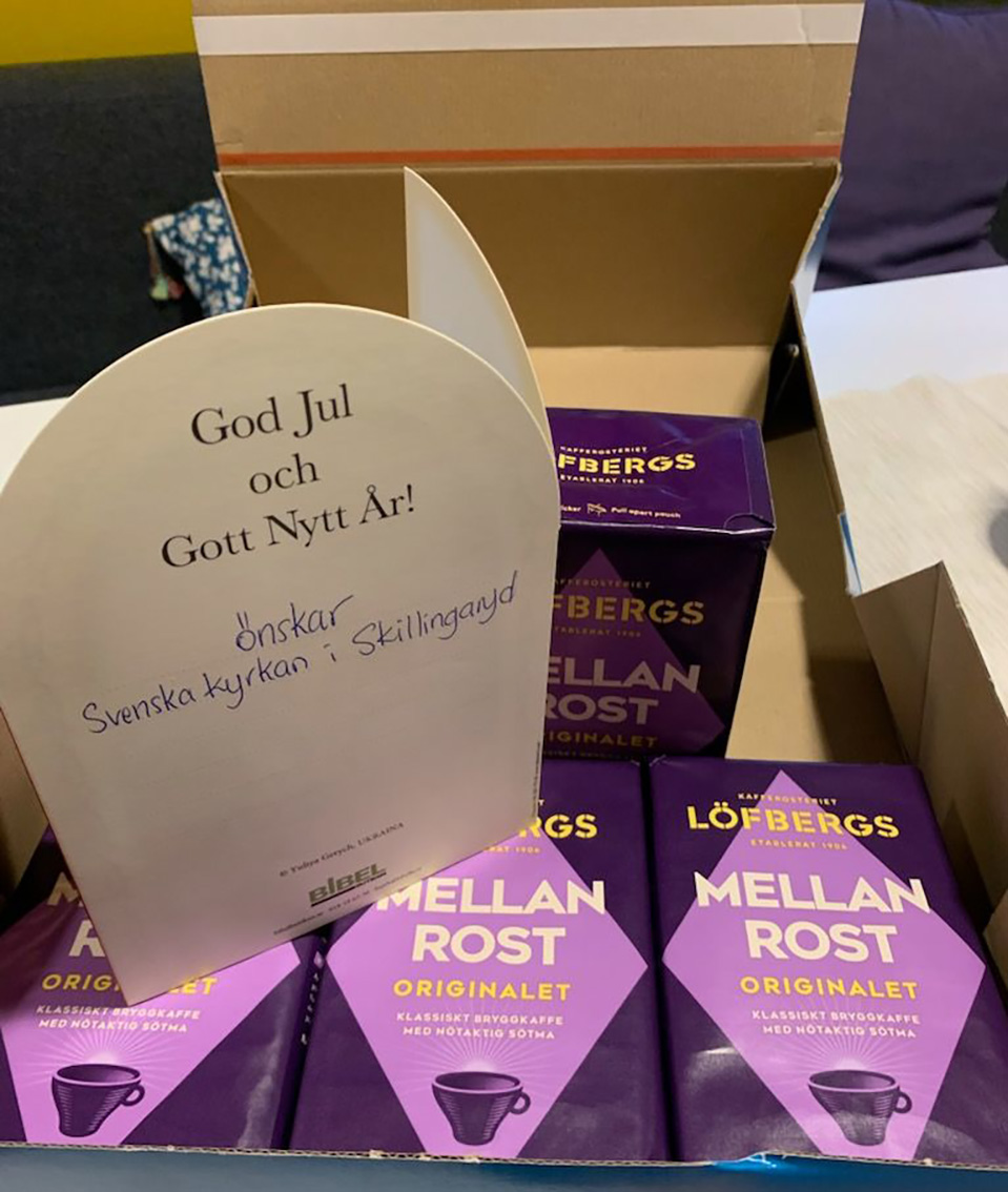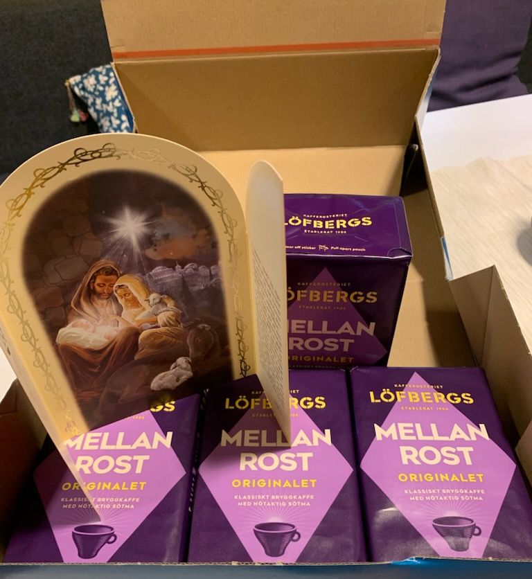Alldeles nyligen damp det ner en julhälsning innehållandes fyra paket kaffe hos Svenska kyrkan i Mallorca. Kaffet var sänt från Skillingaryds församling.
