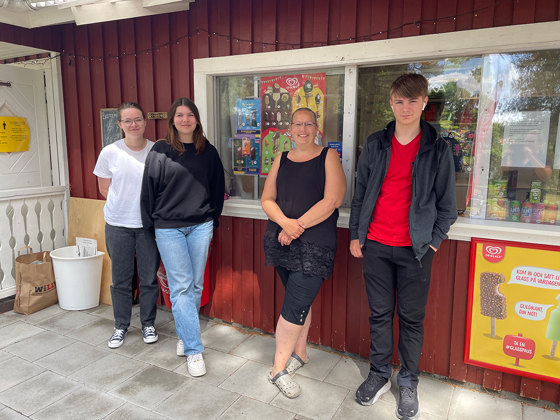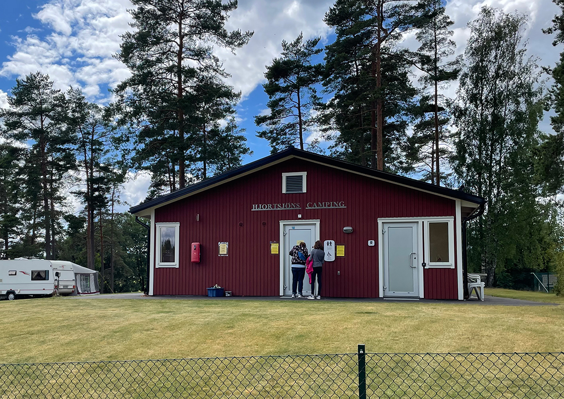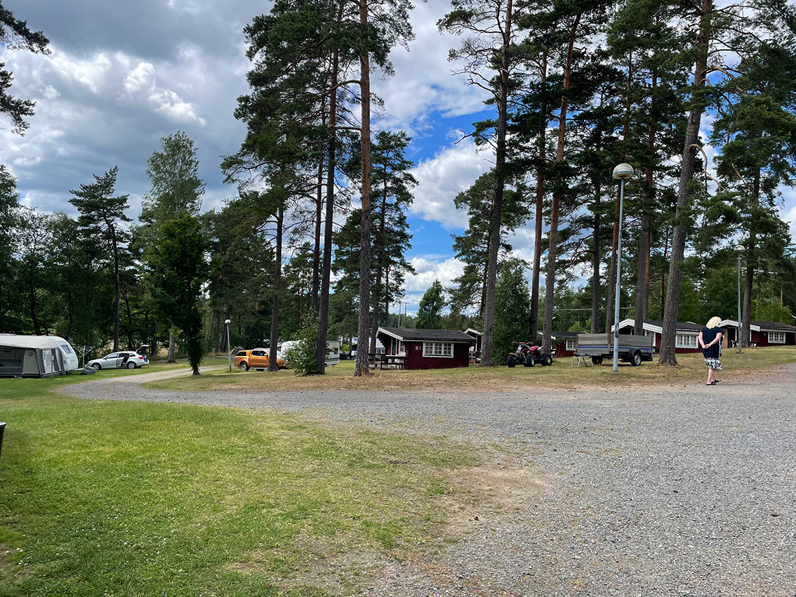 – Campingen har 31 campingplatser och sex stugor. Merparten av alla som tältar väljer att ha el i dag för de kanske har med sig sin elektriska kylväska, behöver ladda sina telefoner och annat. Kiosken är öppen varje dag där vi säljer glass, fika, kaffe och paj som man kan köpa till lunch.