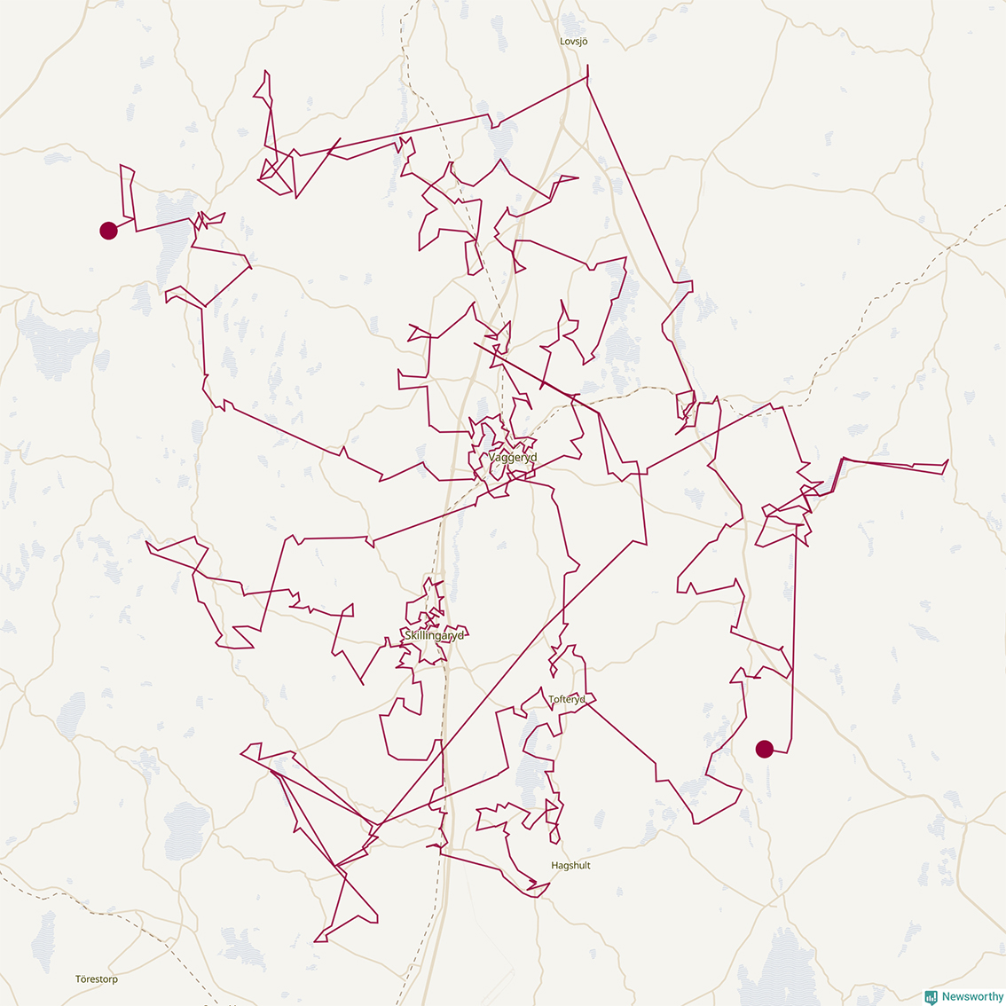 Så här skulle tomtens resa kunna se ut i Vaggeryd: