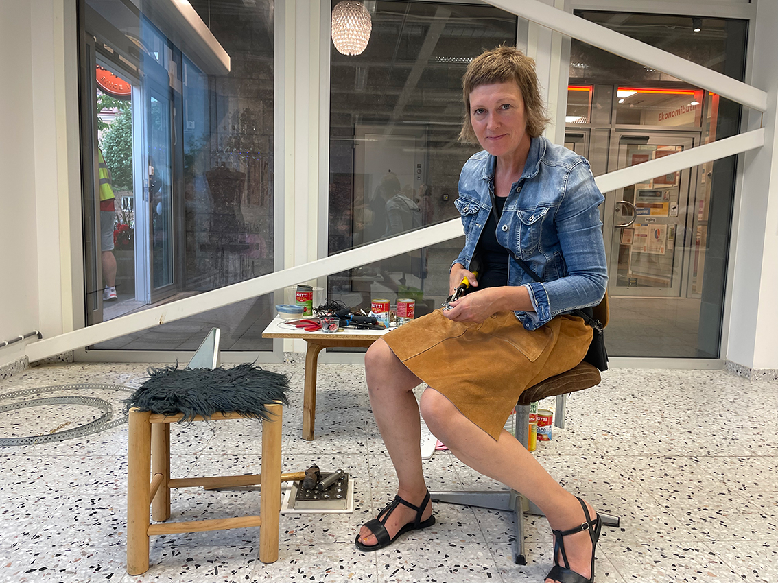 I den tomma lokalen i bankhuset var det full aktivitet under Waggerydsdagen då Vaggeryds konstförening hade konstutställning.