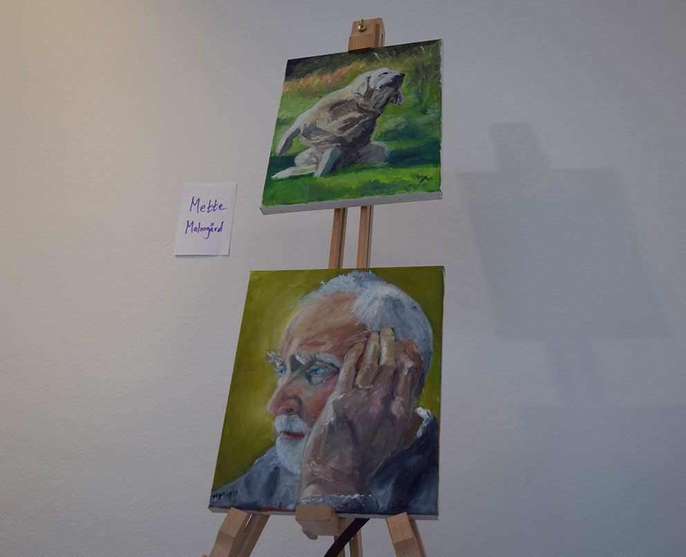 När vi stiger innanför dörrarna i den alldeles perfekta lokalen för konst och kultur möttes vi av kaffe, snittar, björksoda och en mängd konst i alla former och färger.