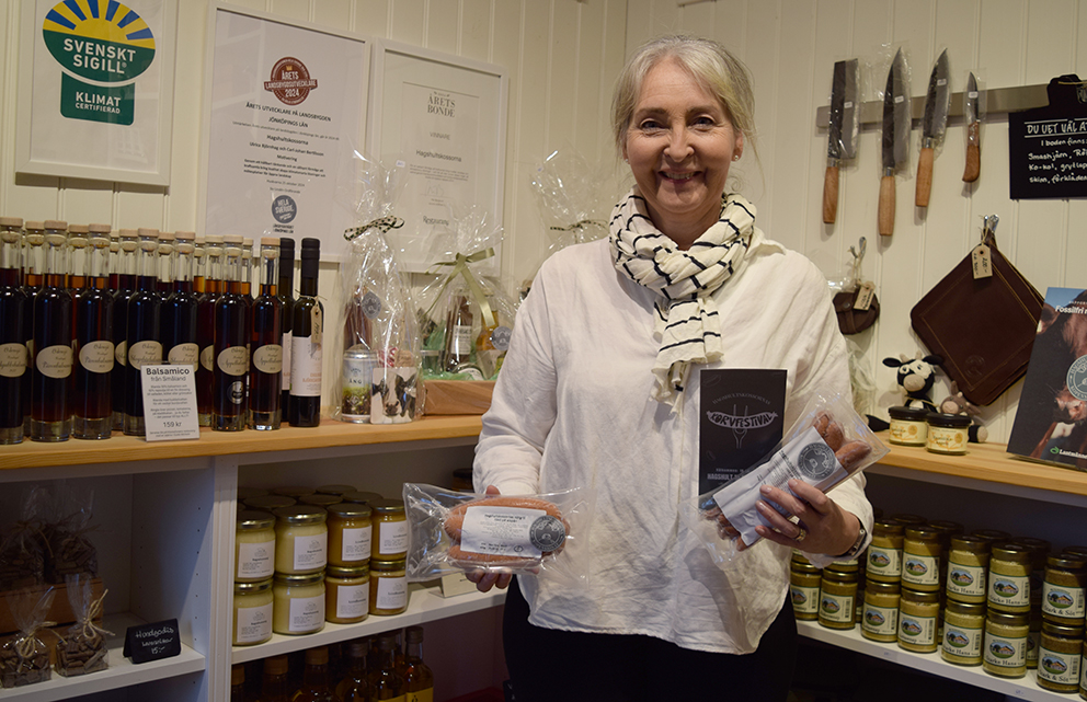 Vi tog en titt in i gårdsbutiken och träffade Ulrica Björnhag som tillsammans med Carl-Johan Bertilsson arrangerar korvfestival för andra året.