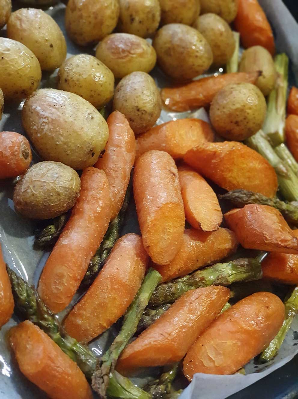 Klyftpotatis eller rostad småpotatis/Ugnsrostade grönsaker