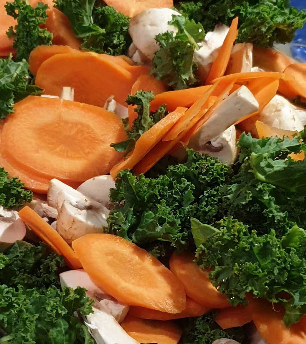 Grönsaker som är goda att använda är broccoli, blomkål, grönkål, zucchini, aubergine. Champinjoner ger också en extra piff. Testa dig fram till vad du gillar bäst, finns så mycket gott!