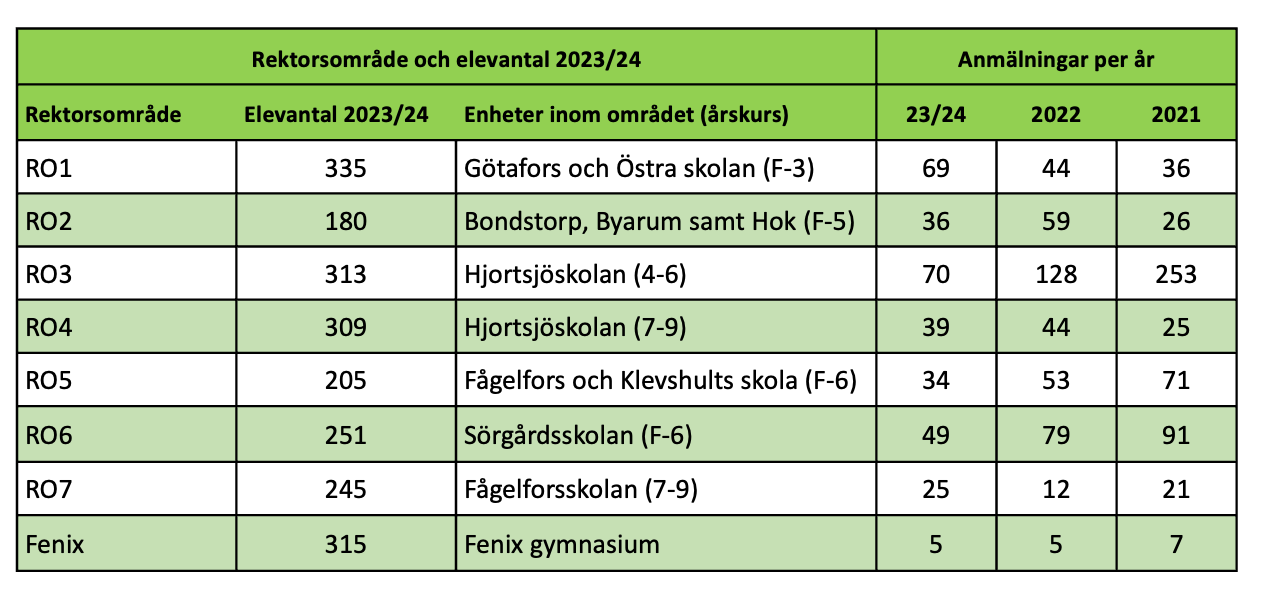 – Det har minskat på de flesta områden. Sedan kan vi se att det på Götafors/Östra ökat, men där har även elevantalet ökat. Det har minskat på Hjortsjöskolans mellanstadie.