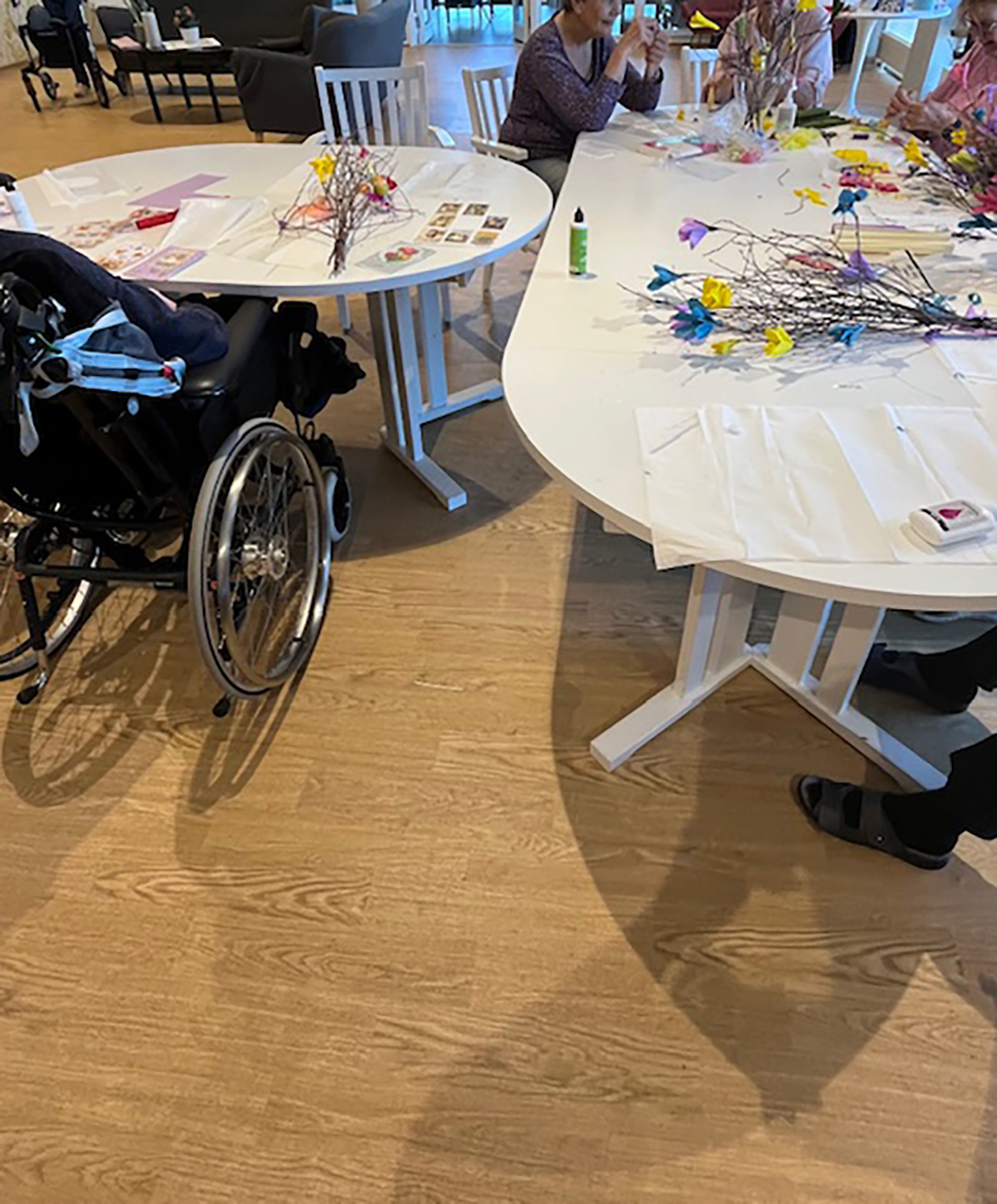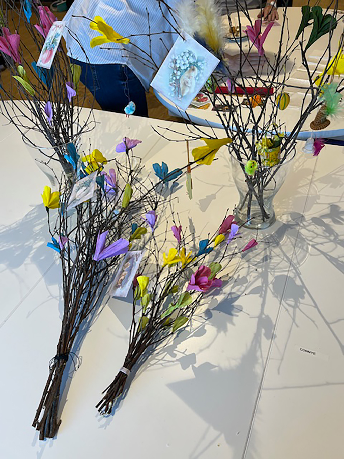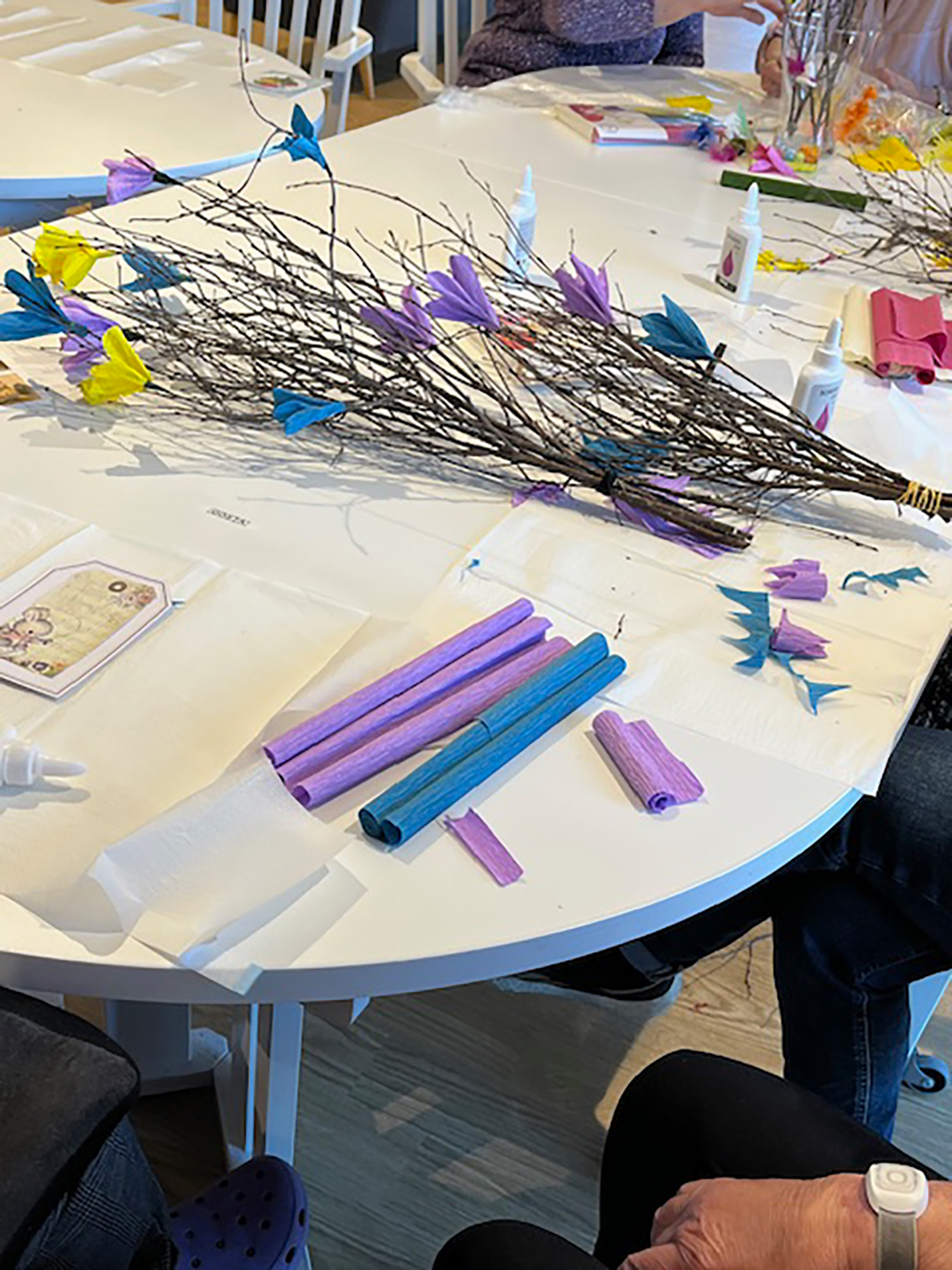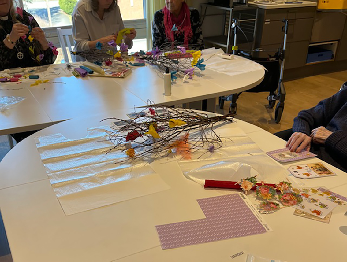 Påskkort tillverkades med alla boende som var med och varje avdelning fick sin påskris. Det var mycket uppskattat både från boende och personal.