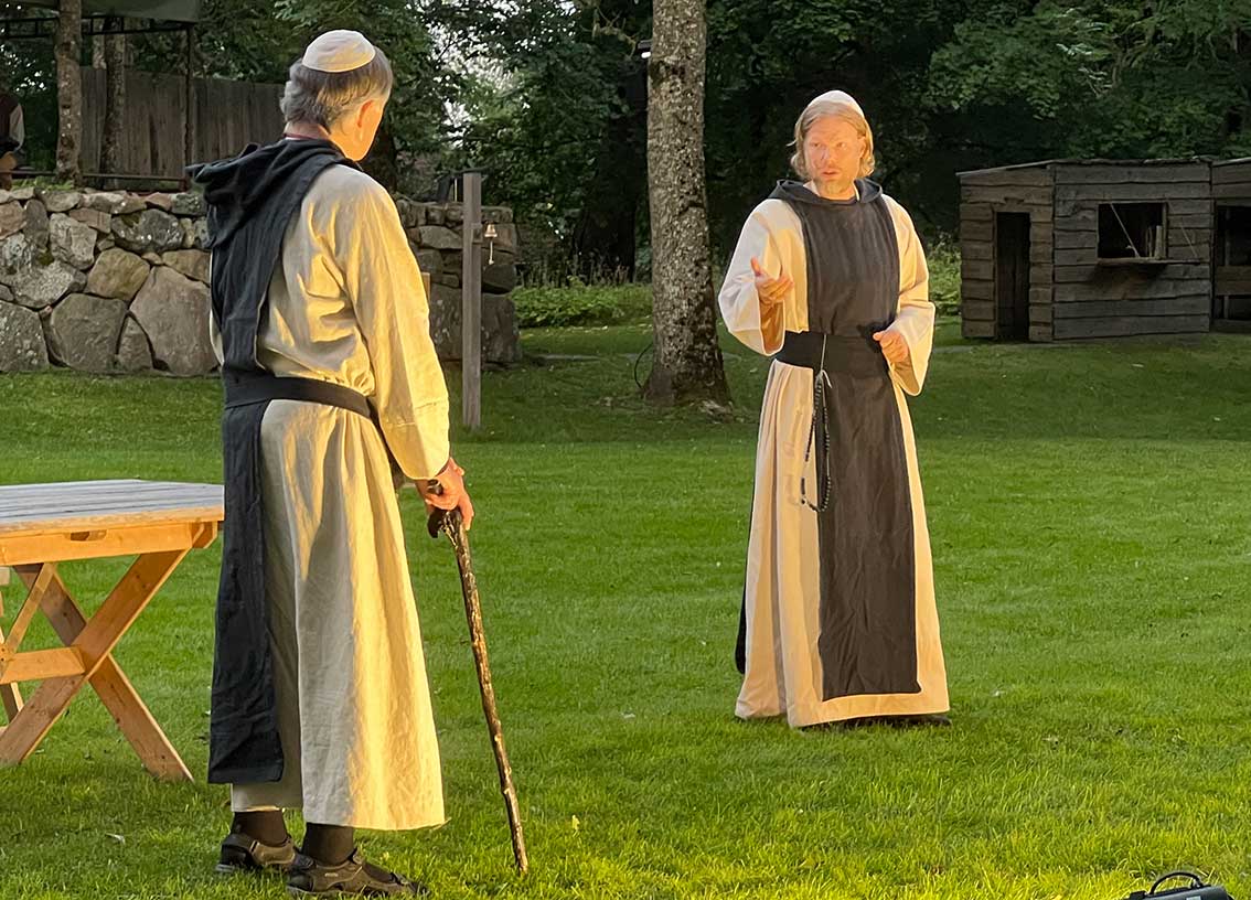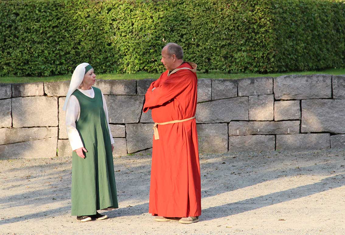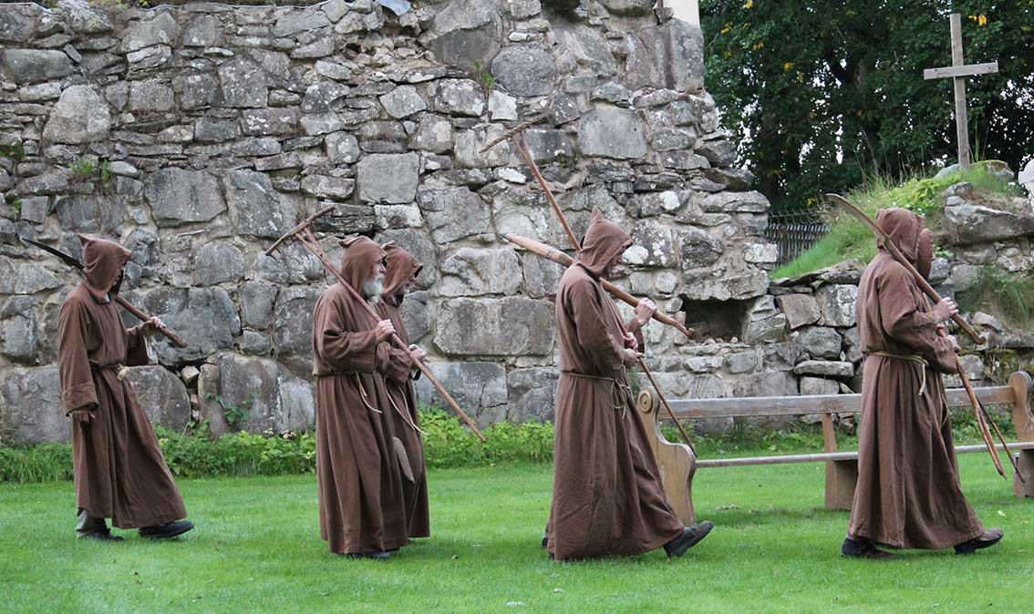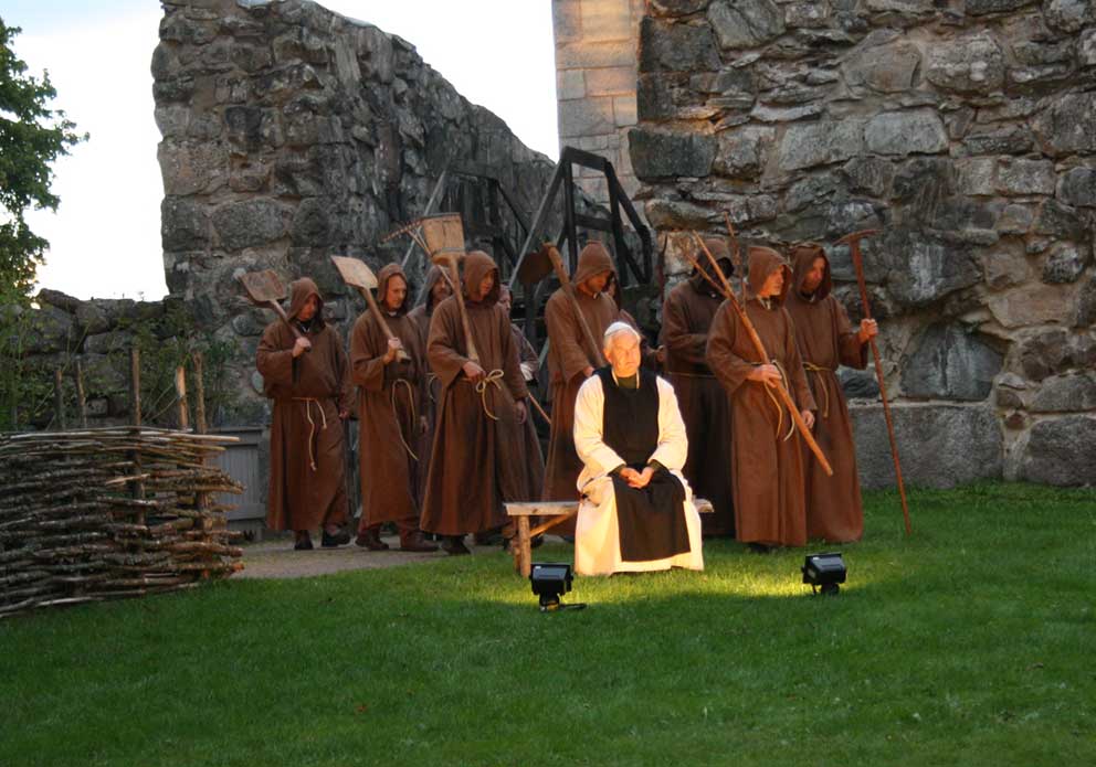 I en scen utsätts klostret för övergrepp som syftar på en verklig händelse år 1360. Den kan sägas vara betecknande för den tid, då klostrets innehav av gårdar växte och släktingar ibland kunde känna sig bedragna på arv och rättigheter, när egendom som de ansåg sig ha anspråk på, blev bortskänkt till det allt rikare och mäktigare klostret i Nydala.