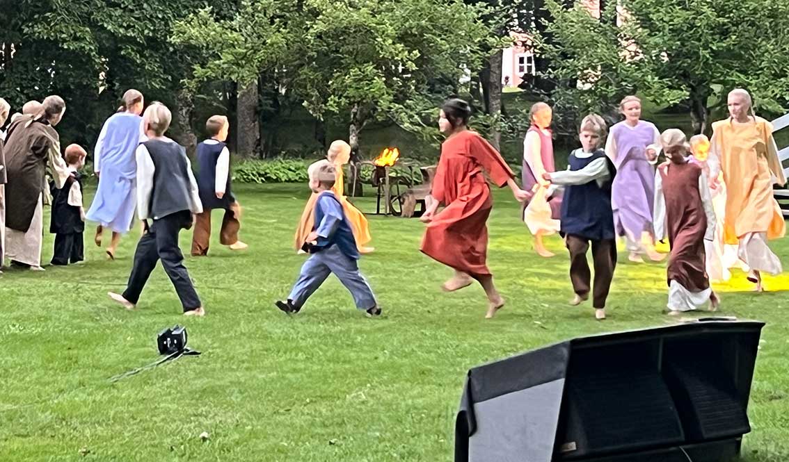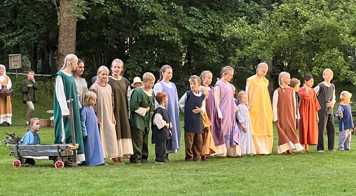 Hela bygden sluter upp för att framföra krönikespel och folk kommer år efter år trots att handlingen i princip är densamma år efter år. I år hade man också tur med vädret och folk verkade trivas i den sena kvällen.