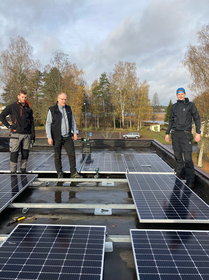 – 78 paneler ska på plats som kommer att producera ungefär 32 000 kilowattimmar per år och kommer att spara cirka 50 000 kronor per år, total besparing över 30 år blir ungefär 1,7 miljoner. Det blir ett bra tillskott för er, säger installationskillen från Solpower från Huskvarna.
