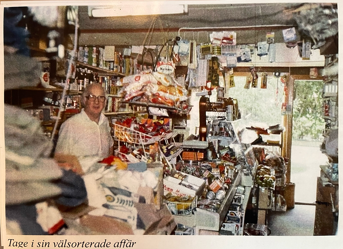 Den här praktiken var ett trevligt minne för mig och när jag slutade så fick jag en stor påse godis med mig hem. Han hade en målarpensel, en borste som han bad mig att damma med mellan varorna men det var inte mycket att damma för varorna stod så tätt. Tora avled 1975 och Tage 1976. Vi får minnas dem.