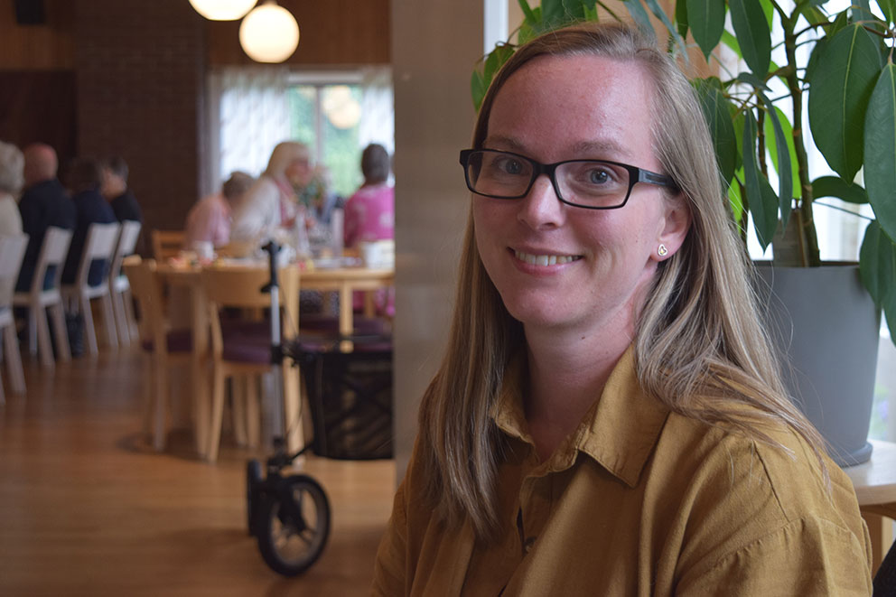 Rebecka Säll från Vaggeryd var också ett nytt ansikte i församlingshemmet. Rebecka kommer närmast från en tjänst i Sävsjö och kommenterar sin första dag som kyrkomusiker så här: