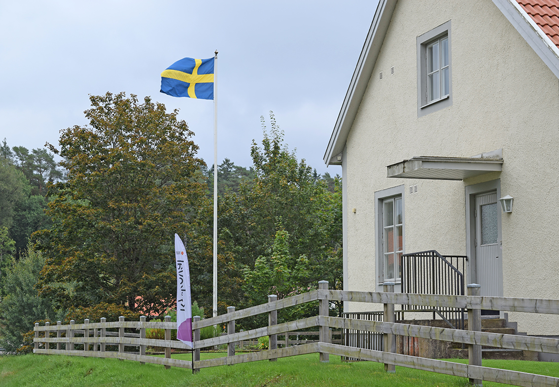Flaggan i topp intill Svenarums församlingshem