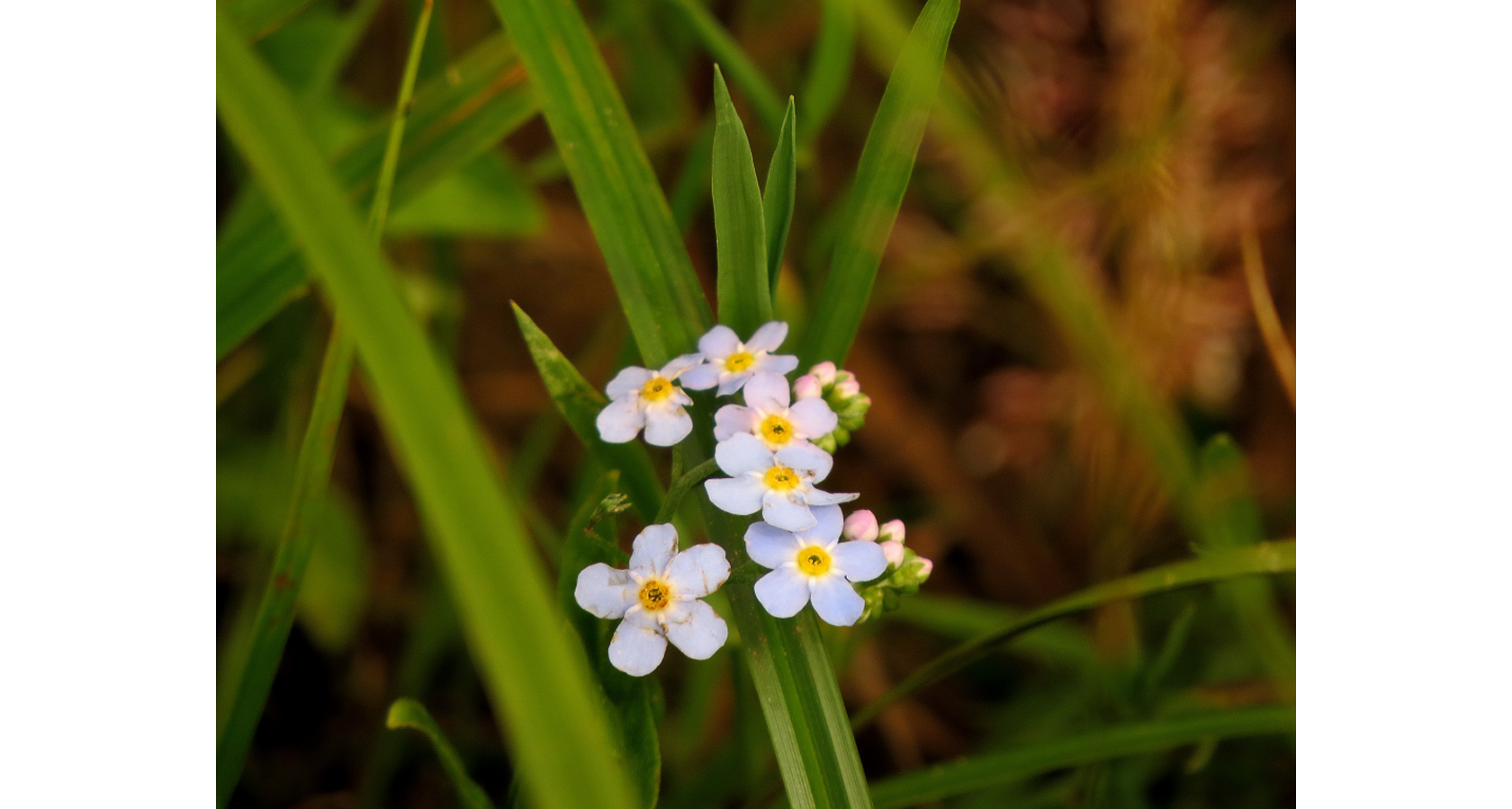 Vackert blommande sumpförgätmigej, ”Myosotis laxa”, som är en ett- eller tvåårig ört som kan bli upp till fyra decimeter hög.