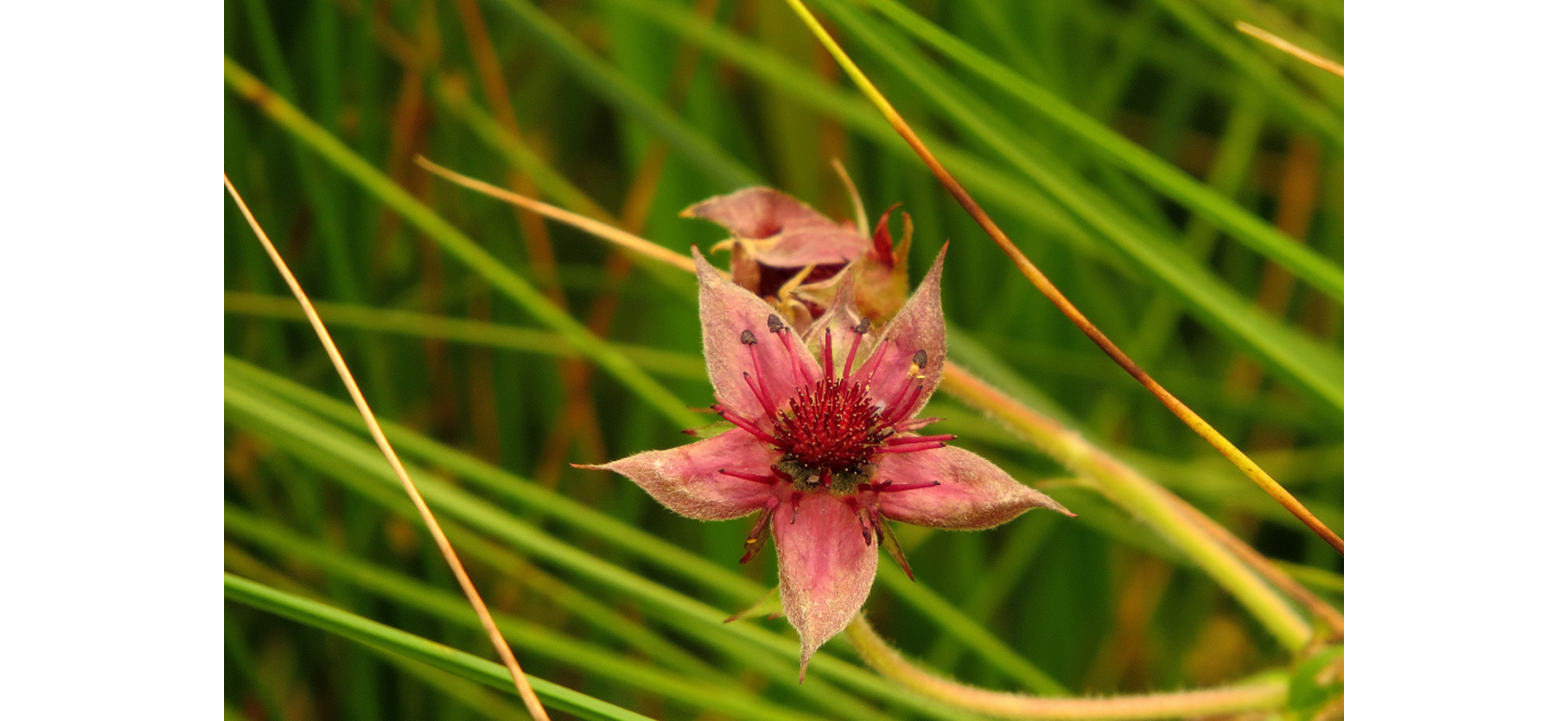 Bilden visar arten kråkklöver, ”Potentilla palustris”, som är en flerårig ört som kan bli upp till fem decimeter hög och som ofta bildar stora bestånd.
