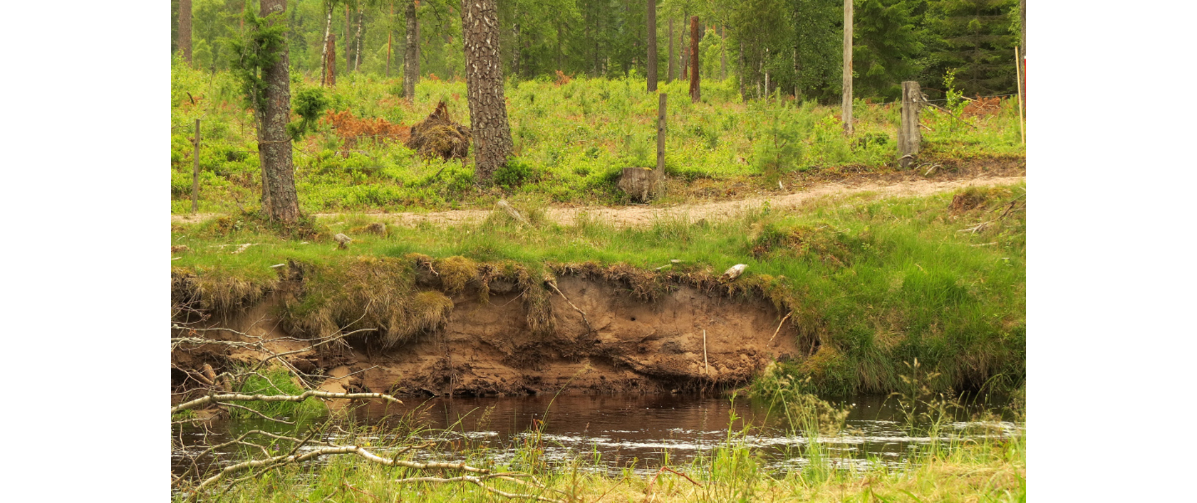 Inlandsisen har efterlämnat en mjuk och näringsfattig sand vilket syns tydligt på bilden där kvigorna brukar gå ner och dricka.