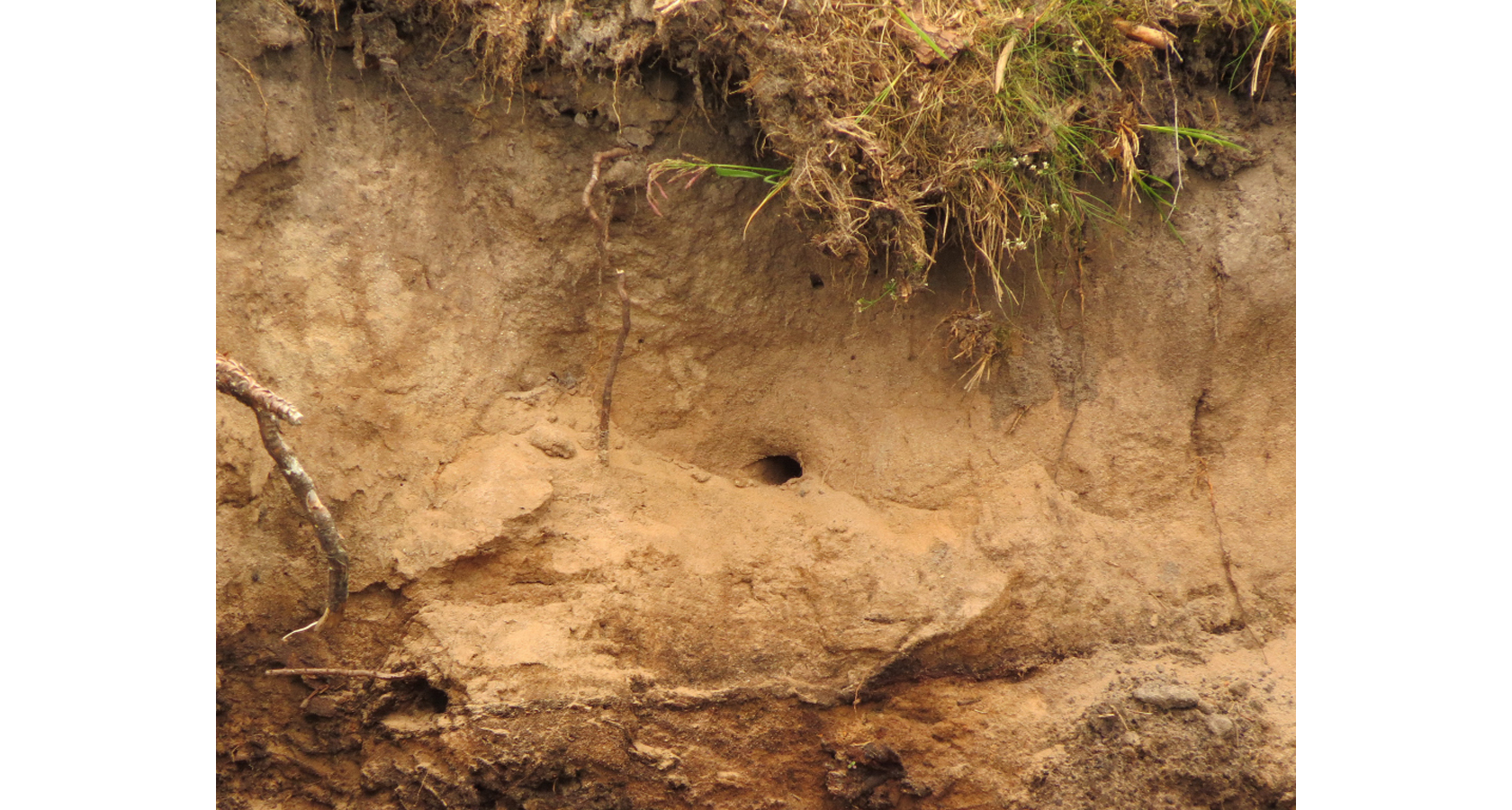 Detta borde vara ett hål efter en häckande eller försök till häckande kungsfiskare, ”Alcedo atthis”, nästa år ska jag vara på plats ett par månader tidigare för att försöka bekräfta eller förkasta min hypotes.