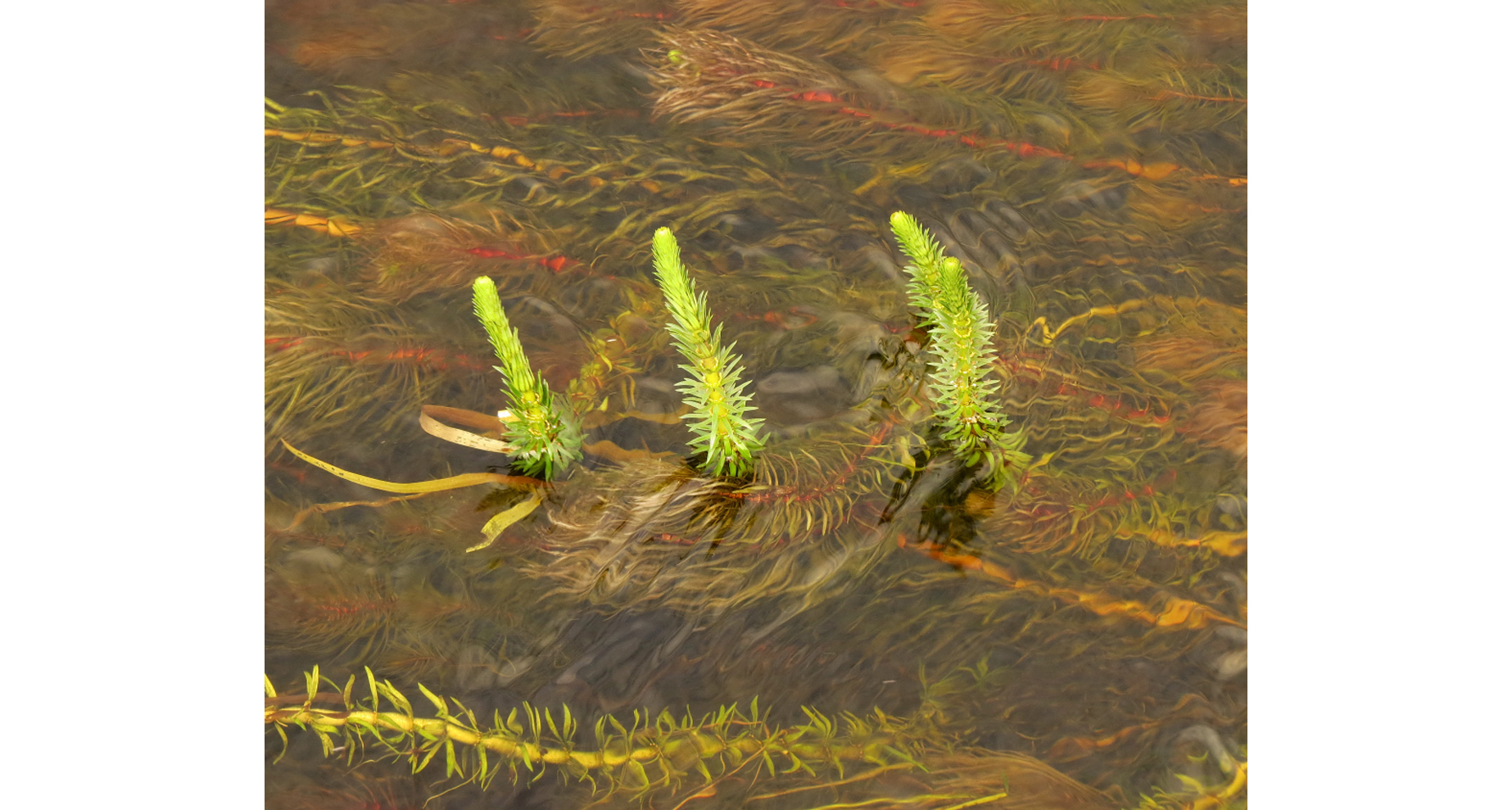 Bilden visar arten vattenpest, ”Elodea canadensis”, som förekommer tämligen rikligt i Lagans vatten inom området.