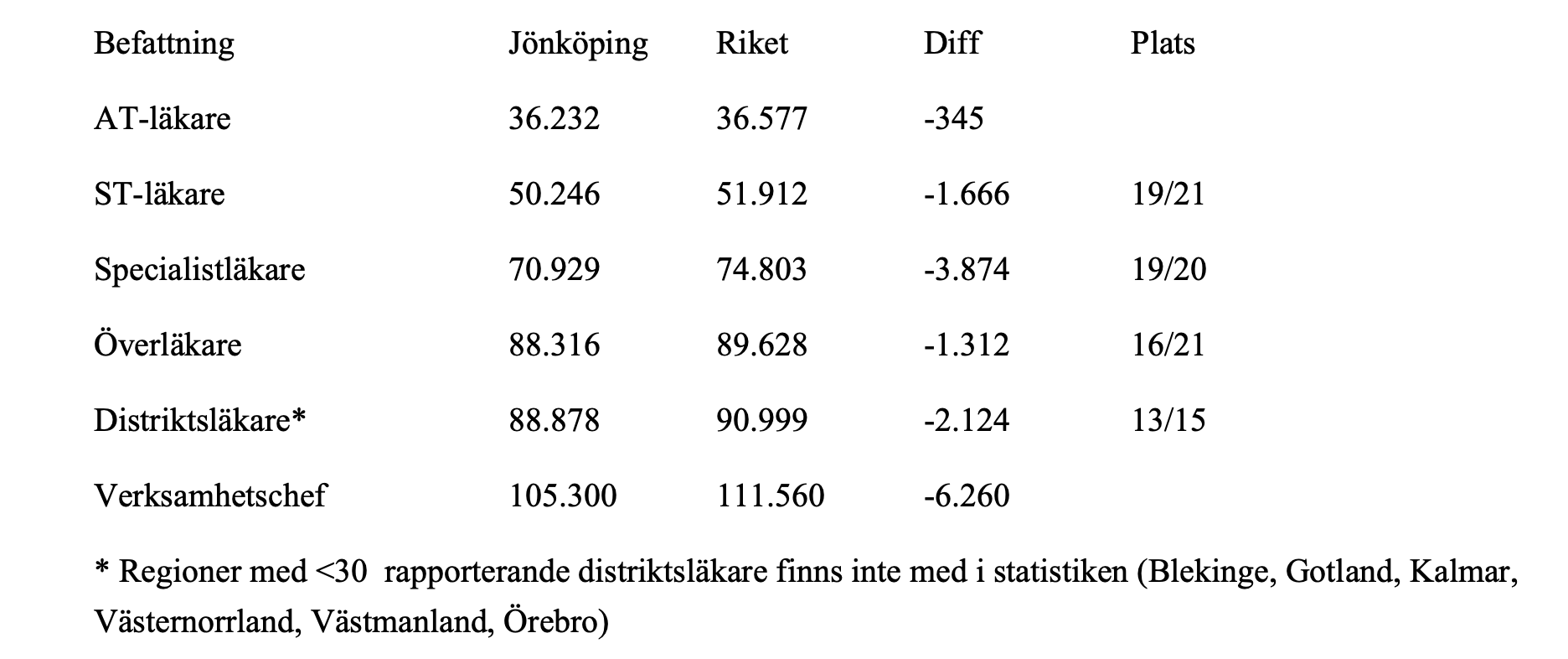 Läkarföreningen i Jönköping bifogar också en tabell hämtad från Saco:s lönesök för att visa hur läget ser ut.