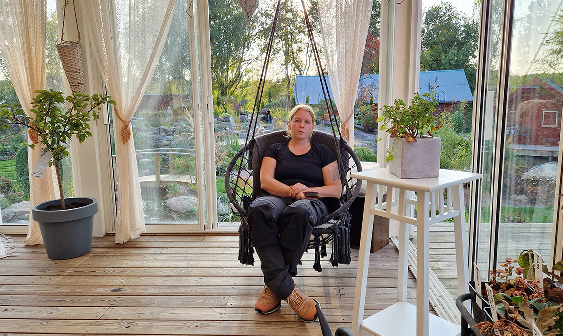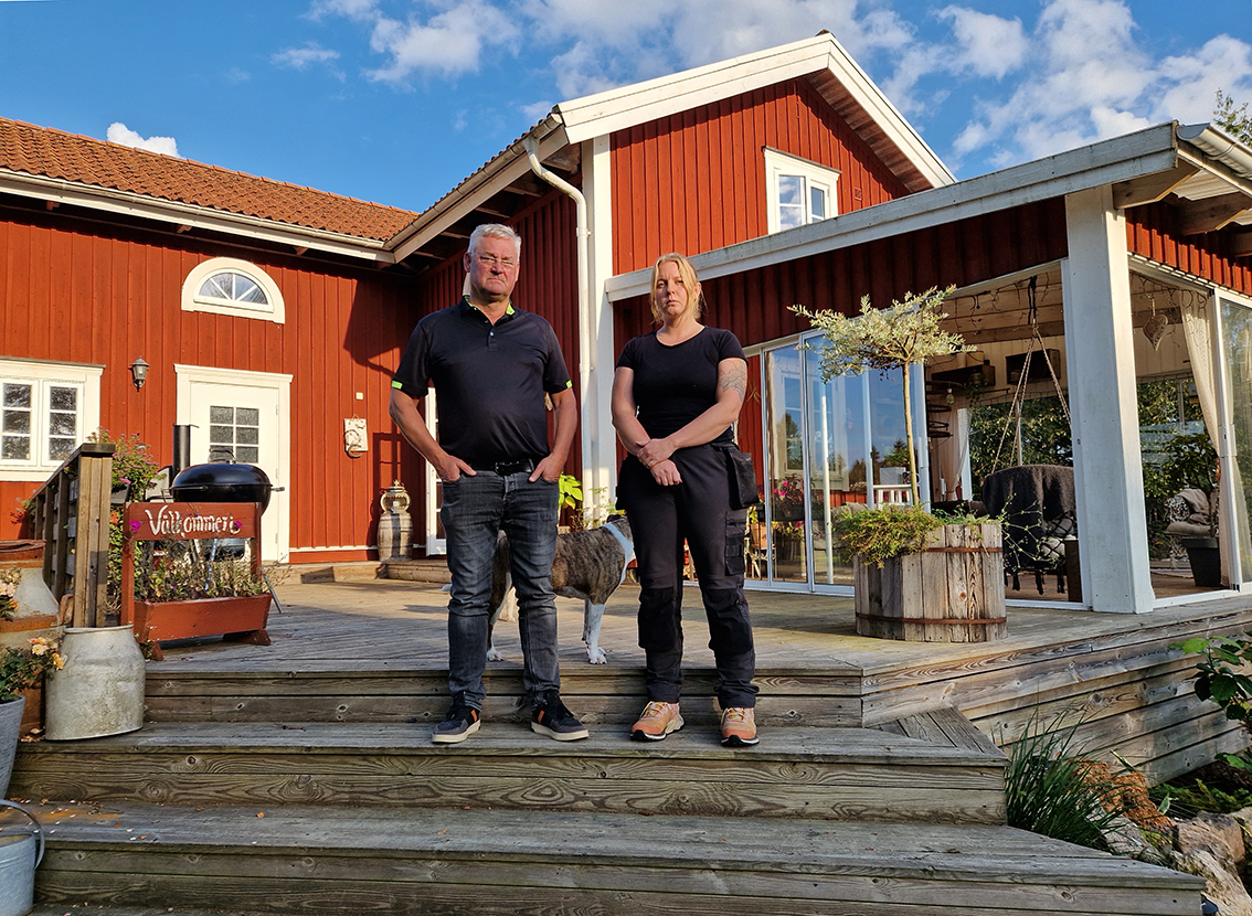 Vi åkte ut till Mörkhultet denna soliga och sena tisdagseftermiddag. Det närmaste verket är 562 meter från husknuten. – Vi fick en chock när vi kom hem i fredags. Tre av fyra verk är i gång. Blinkningarna med skuggorna. Konstant och omedvetet dras ögonen till de skuggkast som snurrar runt på min gård. Ibland låter det från verken jättemycket, ibland inte lika mycket. I dag är det vindstilla och det snurrar fort. Vi kan inte ens tänka oss hur det är när det blåser som värst. Det är sorgens dag, berättar Johanna märkbart påverkad när vi tar plats på altanten som ligger mot väster och mot vindkraften.