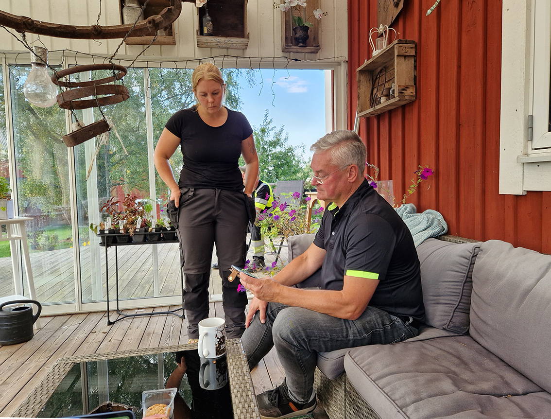 Johanna flikar in: – Vi boende här var väldigt tydliga med vilka konsekvenser det skulle få för oss, att vi bekostade egna bullerberäkningar och försökte informera kommunen och nu finns facit. Det här hade inte hänt om kommunen använt sitt veto och lyssnat på oss som satt oss in i detta. Man visste inte effekten och man visste inte hur man skulle hantera det här och inte heller konsekvenserna för oss som bor här. Rotorbladen kommer att bli slitna, i dag är ytan glatt och len men när den blir sliten ökar motståndet i luften och det låter mer. Vi hade inte suttit här i dag med skuggor och ljud om kommunen använt sitt veto.