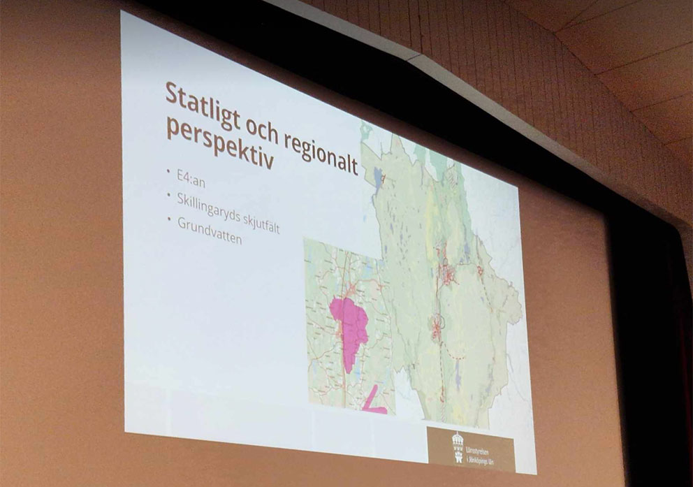 Länsstyrelsen svarar: ”Ni har jobbat med en översiktsplan 2012 och nu har ni jobbat länge med. Ni har Skillingaryds skjutfält och i översiktsplan ska ni visa att ni tillgodoser, eller ha någon annan åsikt. Vi har tillsyn över detaljplan och vi kan ha ett förordnade ändå. Så ser lagstiftningen ut. Vi bevakar att kommunen bevakar riksintresset”