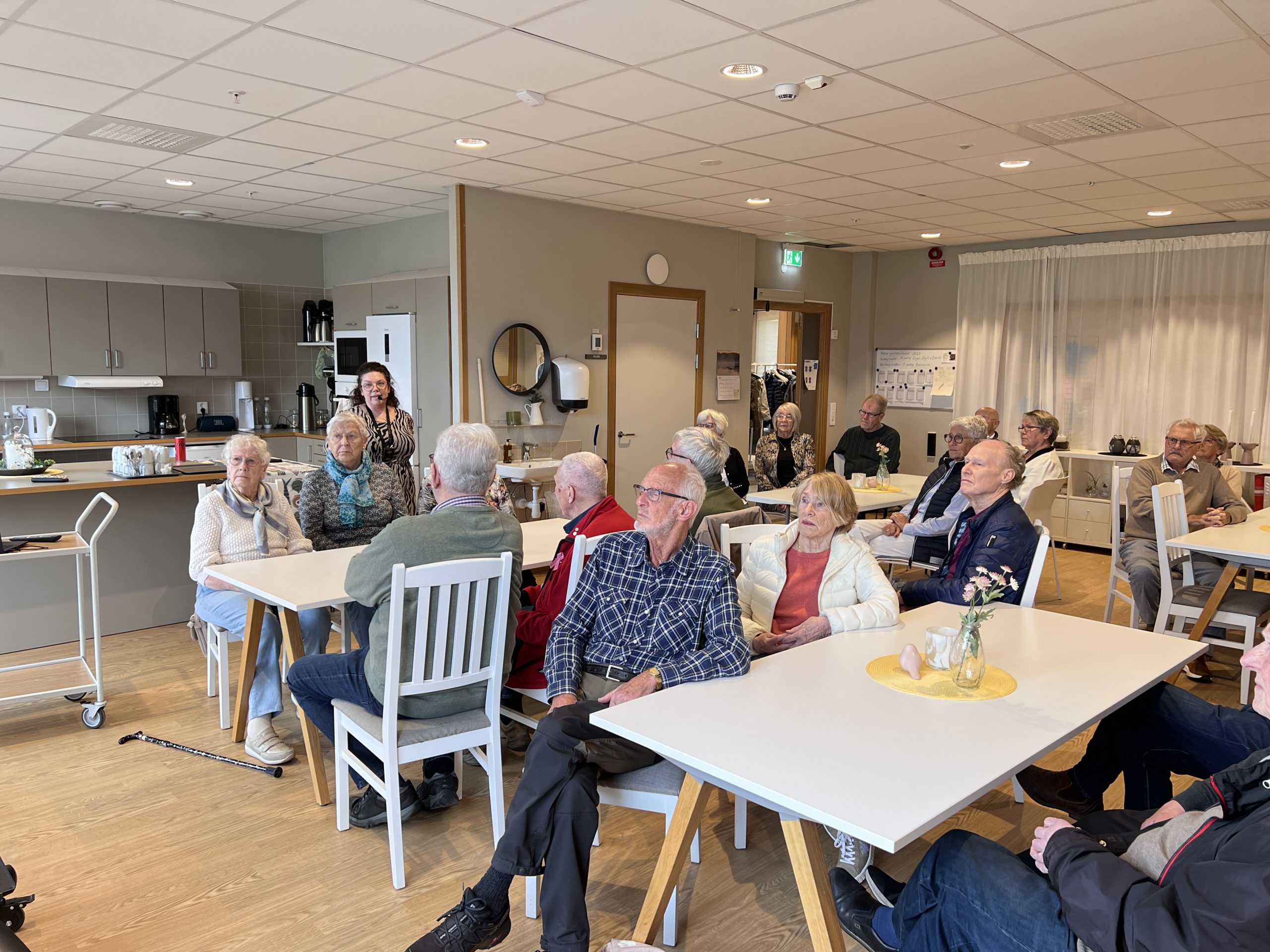 Det blev ett mycket uppskattat studiebesök då SPF Seniorerna i Vaggeryd besökte äldreboendet Mejeriet i Skillingaryd. Äldresamordnare Maria Jigåker var ciceron och berättade om verksamheten i huset. Det är trygghetsboende, särskilt vård- och omsorgsboende, kallat SÄBO och några platser inom LSS. Hyresgästerna har tillgång till välfärdsteknik som till exempel hotellås och sensorer i golven.