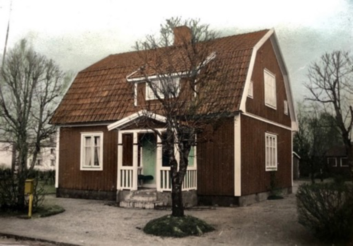 Huset byggdes 1923 av stationskarlen Herman Karlsson, född i Åker 1889 och hans hustru Agda, född i Värnamo 1896. Barnen var Karl-Erik, född 1918, och Maj-Britt, född 1921.