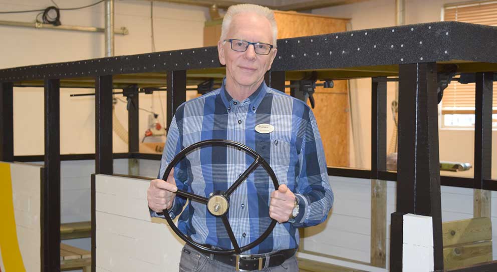 – Nu är telefonkiosken helt genomgången med nytt snickeri, där All-in hjälpt oss med att såga till material, och ny specialfärg har den fått också. Allt har tagit närmare ett halvår att göra klart. Det var många delar som inte gick att använda alls, så kiosken var behov av renovering. Den här telefonkiosken tillverkades på 60-talet och vi har försökt att få den så nära originalskick som möjligt, säger Lasse Fornstål som jobbar på arbetsmarknadsenheten och har varit ansvarig för att renovera telefonkiosken.