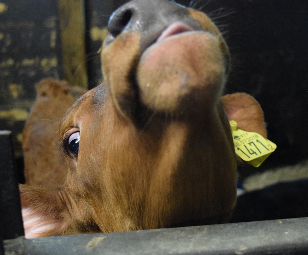 – Här har vi ren mjölkproduktion och vi har 150 st mjölkkor och ungefär 300 djur totalt. Vi får 150 kalvar om året och det är kvigkalvarna vi sparar. Tjurkalvarna säljer vi när de är tre till fyra veckor till granngården i Sjöaryd.