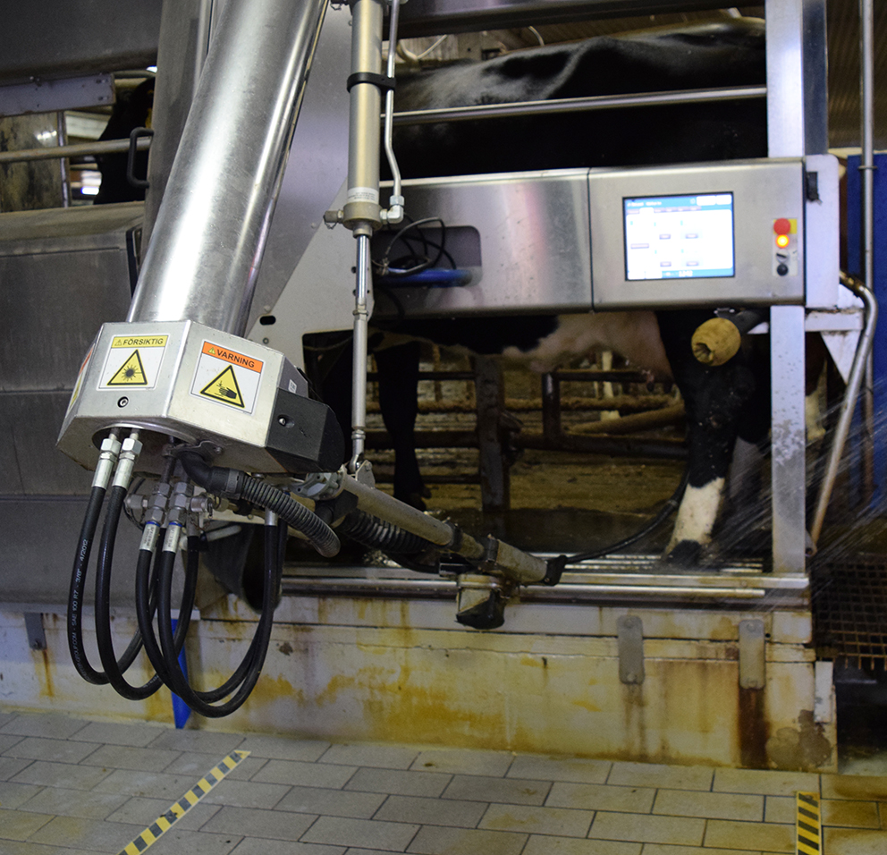 – Vi ska producera 1,3 miljoner liter mjölk, budgeterar Fredrik inför 2017, medan han har full kontroll över vad som händer i ladugården. Kameraövervakning, app i mobiltelefonen, aktivitetshalsband och robotmjölkning.