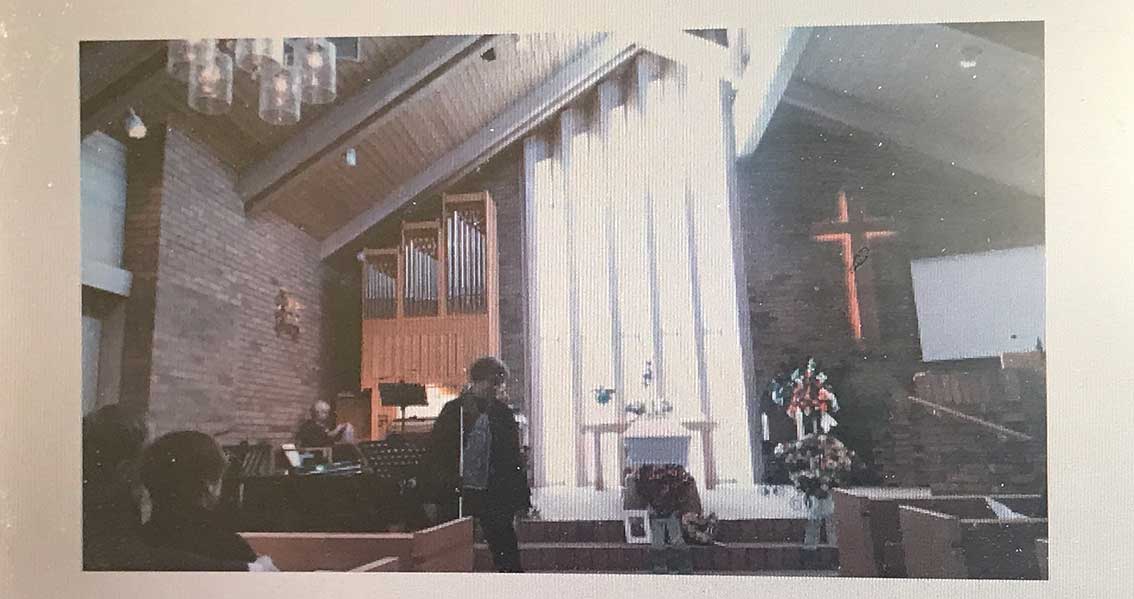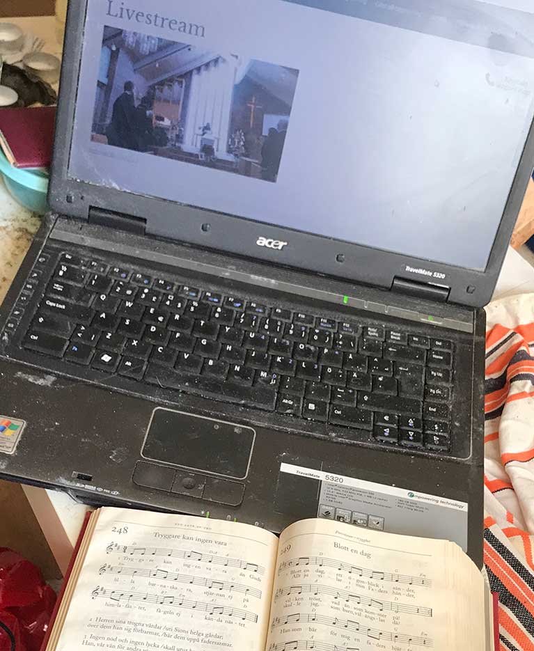 Linus hade psalmboken intill sig och hade klätt upp sig för att det skulle känns som att han egentligen var en av dem som fanns i kyrkan.