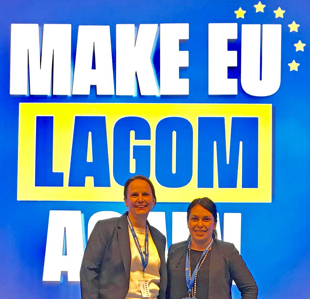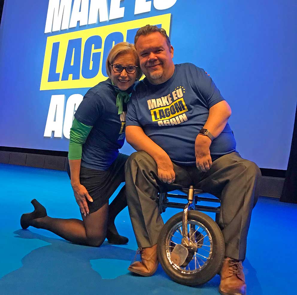 –Partiet lanserar två starka toppkandidater David Lega och Sara Skytterdahl under slogan ”Make EU LAGOM again”. KD vill att EU ska gå mot den ursprungliga tanken som handlade om freden, välfärden och värderingarna. KD är emot överstatlighet men anser att EU är viktigt för att främja välfärden i europa. EU ska vara lagom i bemärkelsen att det måste finnas en måttfullhet i vilka frågor man tror kan lösas genom åtgärder på EU-nivå. EU-kommissionen vill ge sig själva beskattningsrätt vilket KD är emot, noterar Jenny Larsen och Emma Ewaldsson.