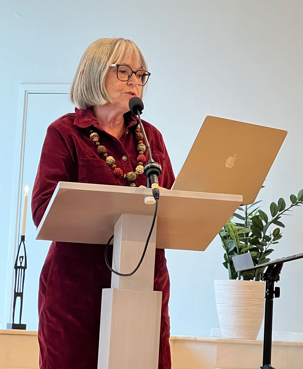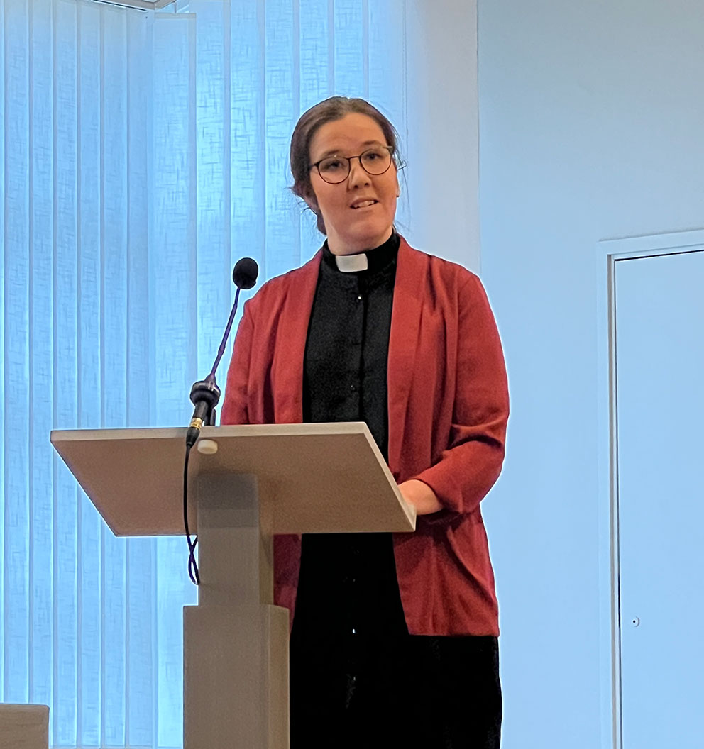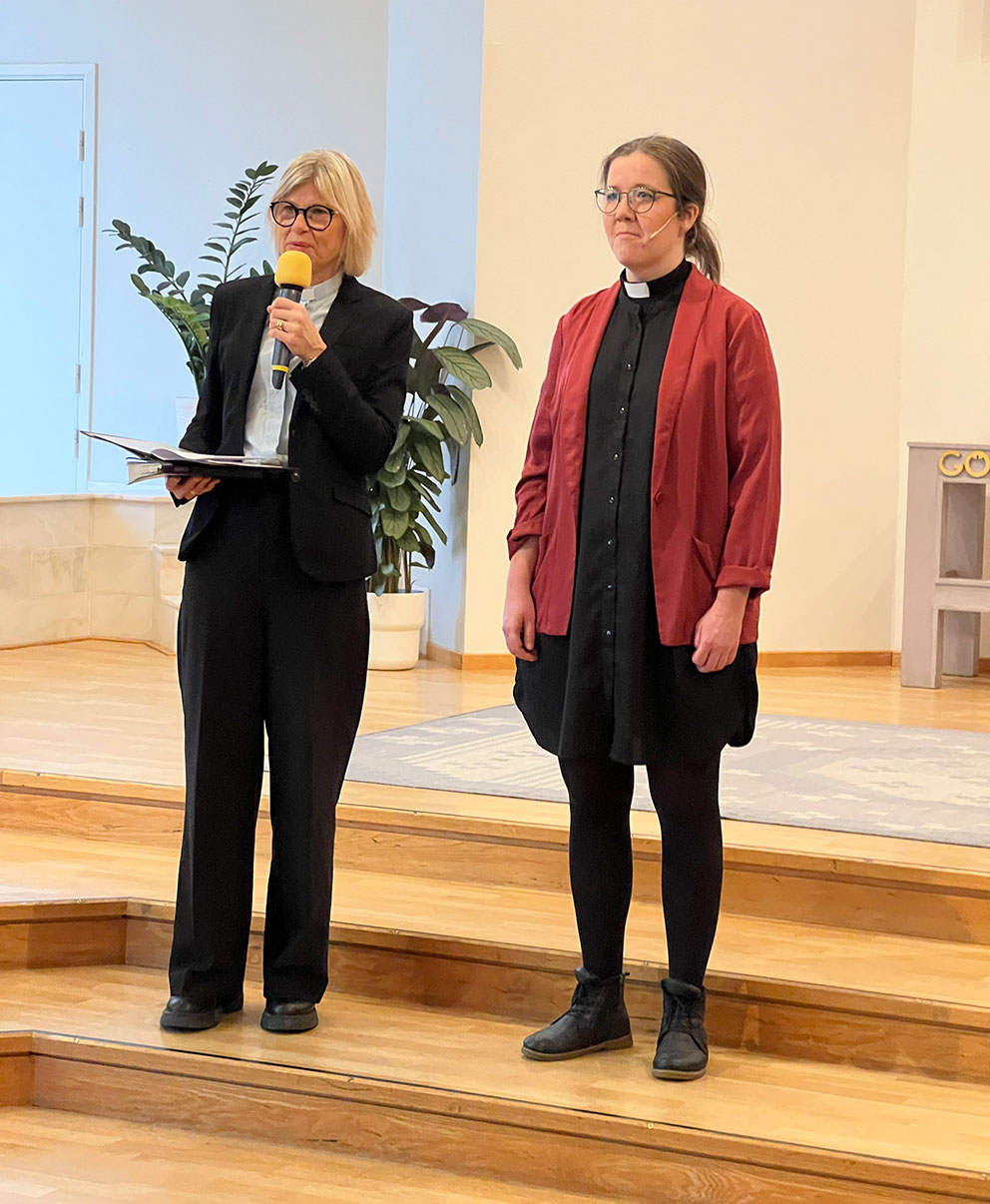 Representant från samfundet EFK (Evangeliska FriKyrkan) Anna-Lena Toursie ledde ceremonin. Efter detta predikade Lovisa Bernberg över ämnet ”Den kämpande tron”.