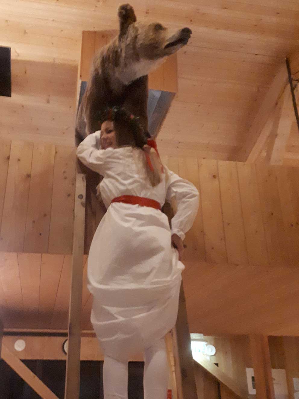 Lions Lucia från Gnosjö med följe sjöng stämningsfullt och sen var de nyfikna på hur björnen kändes att klappa. Ingvar Svensson kåserade, festkommittén serverade julmat och vi hade en trevlig kväll med lotteri och fina priser.
