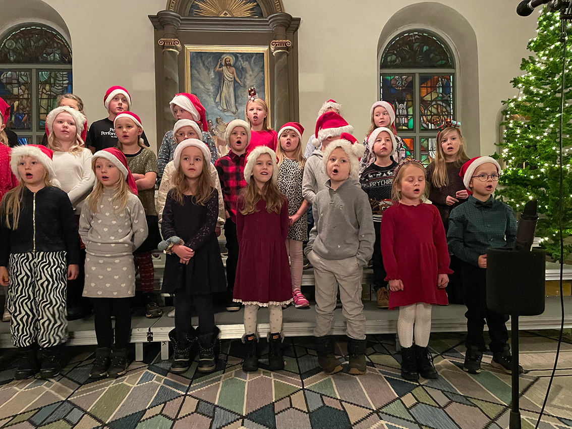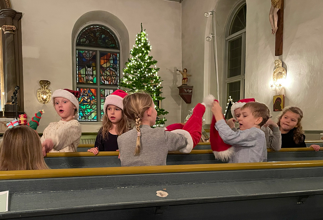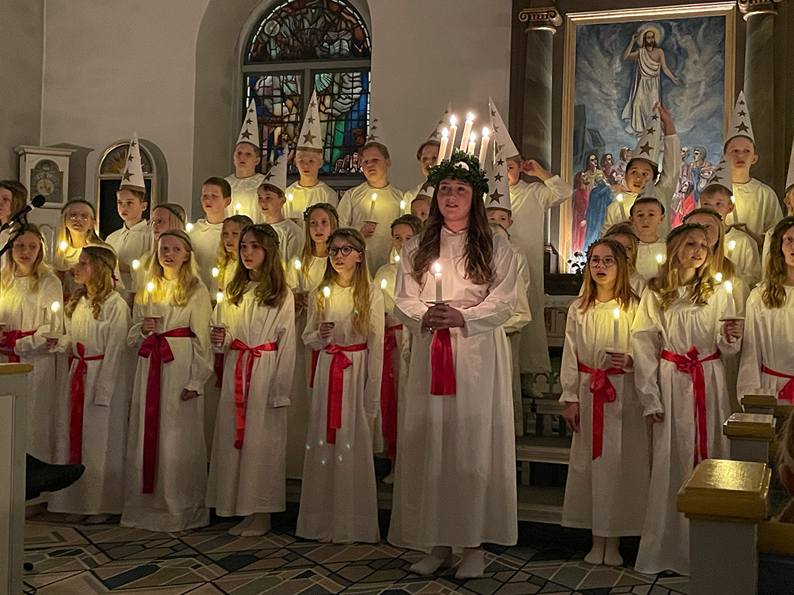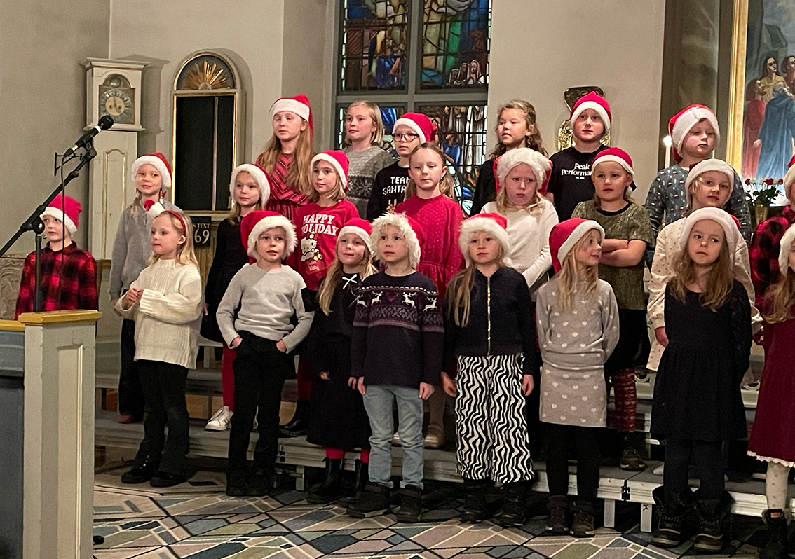 Först ut var förskoleklass upp till årskurs 2 som sjöng några fina julsånger. Sedan var det dags för lucia med tärnor och stjärngossar att skrida in i kyrkan och sjunga. I luciatåget sjöng elever från klass 3 till 6.