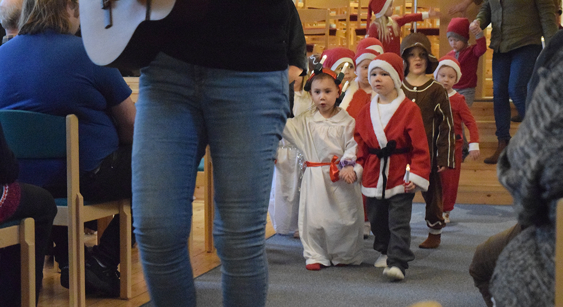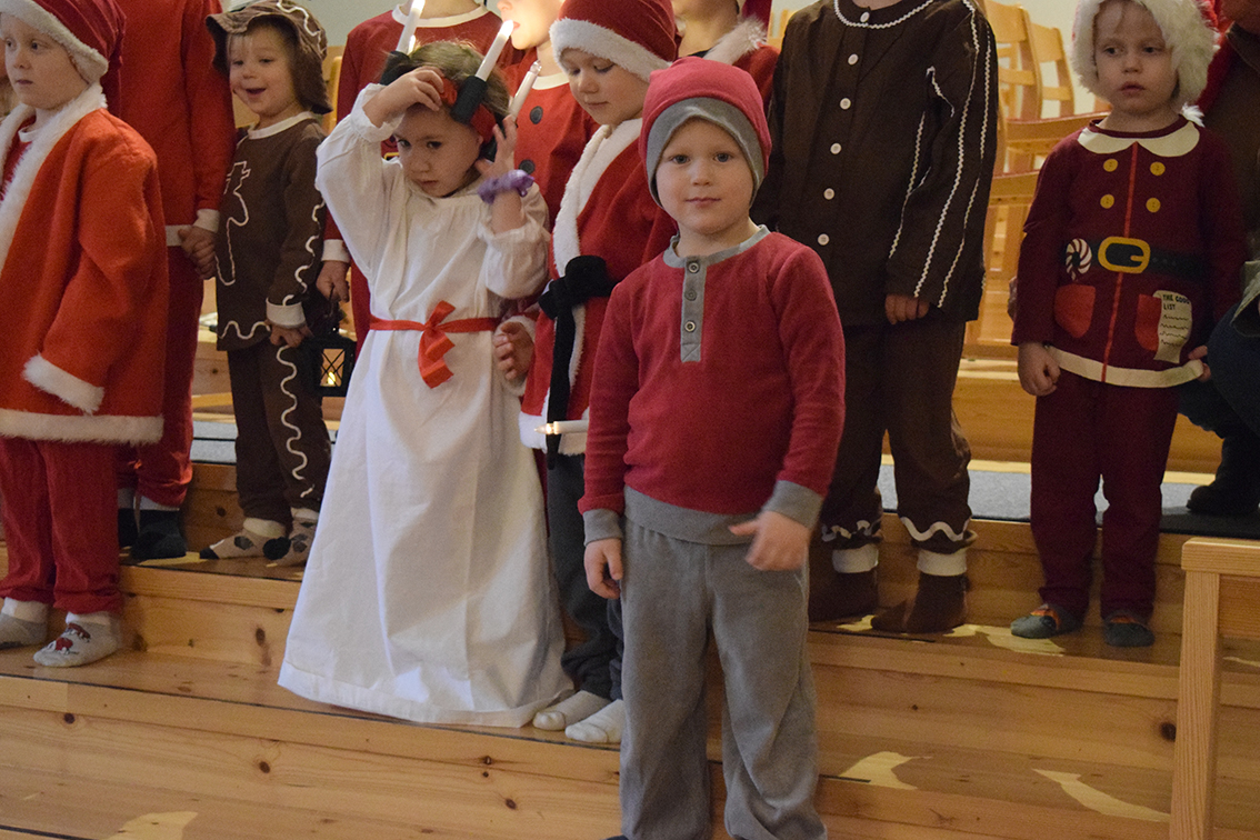 – Vi fick frågan och det kunde vi absolut inte kunna säga nej till. Först luciafirande och sedan fikar vi, informerade Margareta Claesson innan det lilla luciatåget tågade in.