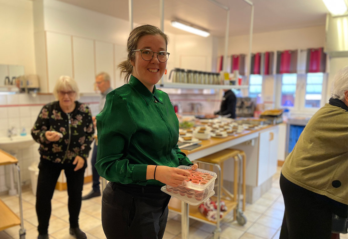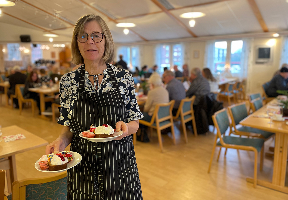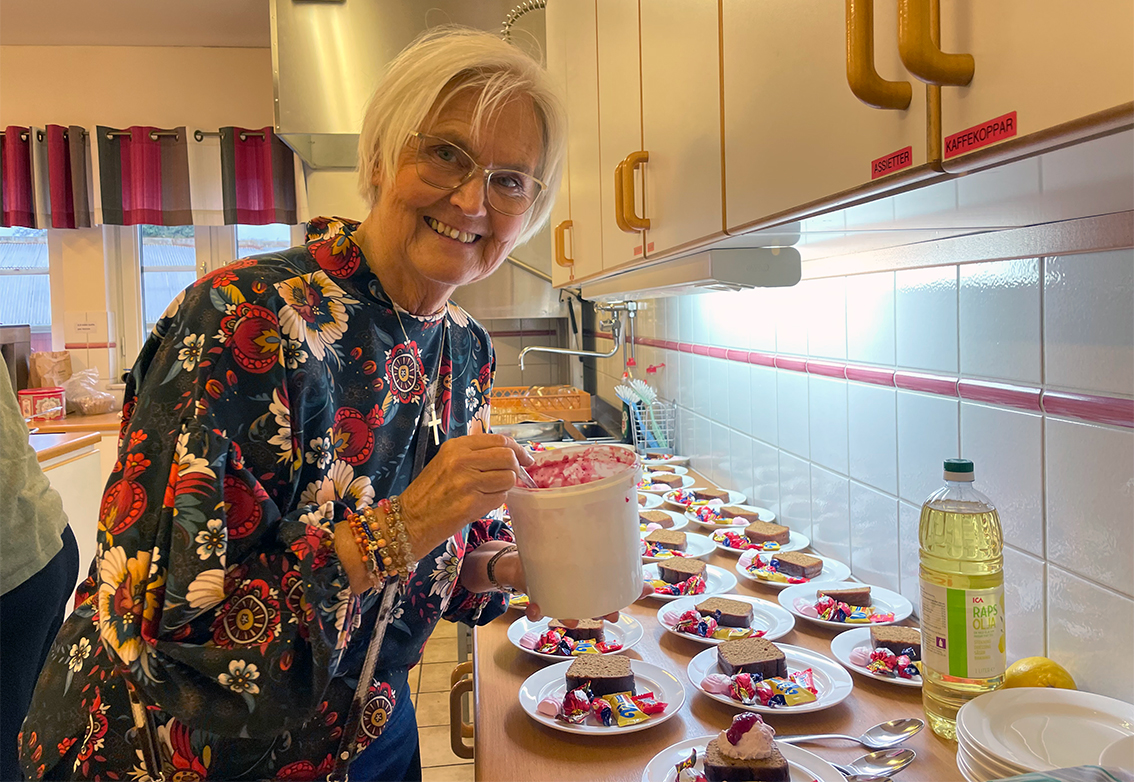 – Utan volontärerna skulle vi inte kunna göra nånting av det här. Det är volontärerna som kommer och bidrar och fixar allt det här, med att lägga upp maten och servera. Det är också volontärerna som bemannar så att vi kan ha kaféerna öppna på våra mötesplatser. Volontärerna är guld värda, säger Karoline Lundén, diakon i Byarums pastorat.