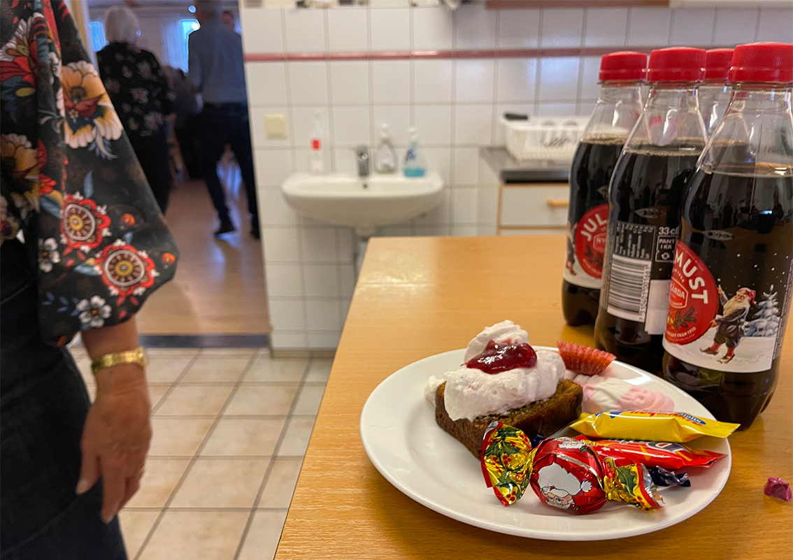 Över 80 gäster kom till Equmeniakyrkan i Vaggeryd i går – människor som brukar besöka mötesplatserna i Skillingaryd och Vaggeryd. Det här är en jultradition, som anordnas av kyrkorna i kommunen. Det serverades traditionell julmat, julmust, och efterrättstallrik med mjuk pepparkaka, lingongrädde och julgodis. Och det är tack vare sponsorer, men framförallt volontärer som allt det här kunde bli verklighet.