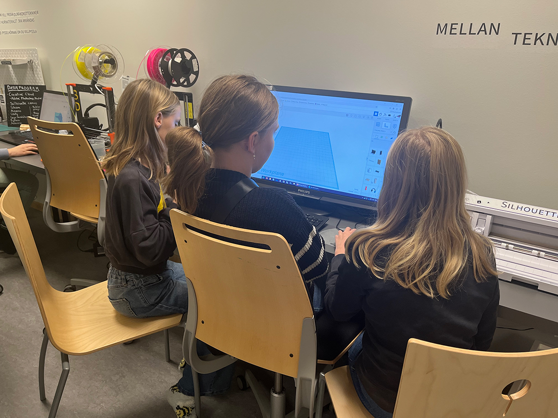 – Det är roligt att makerspace finns här i kommunen. Jag har varit i andra kommuner och där fanns det inte. Det är jätteroligt och vi är tacksamma. Det finns så mycket olika saker att testa som inte finns i skolan. Då är det bra att komma hit och det passar perfekt nu när det är höstlov, säger Ghadir.