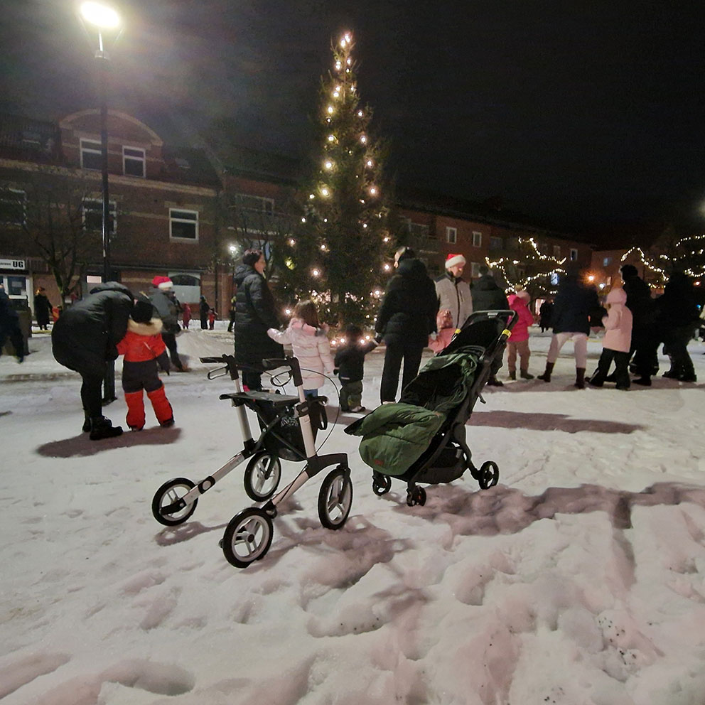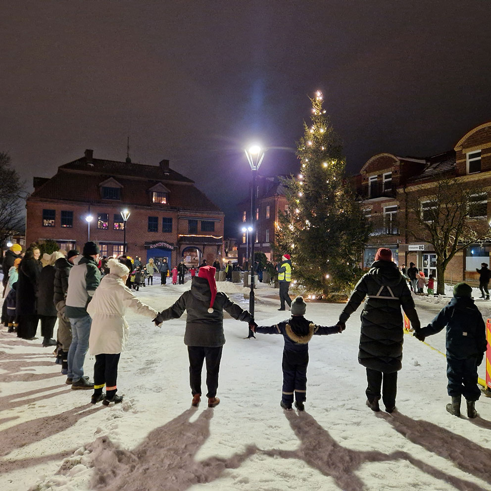 Och visst blev det succé. Ringen runt granen fyllde hela torget med dansande barn, ungdomar, föräldrar och pensionärer.