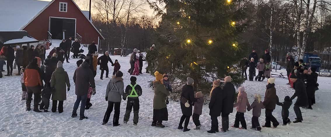 Och visst blev det succé. Ringen runt granen fyllde hela torget med dansande barn, ungdomar, föräldrar och pensionärer.