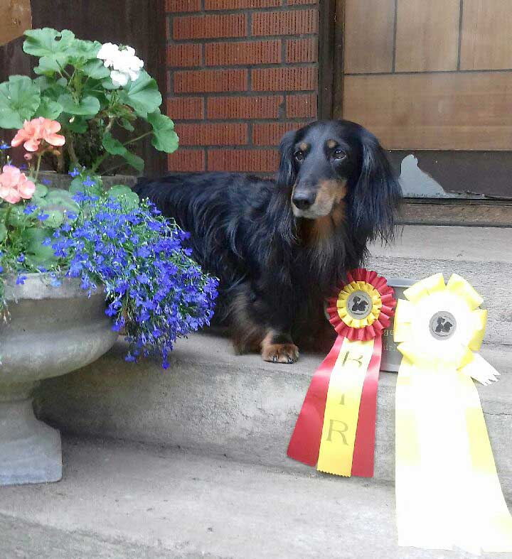 – Sissi är en internationell champion, så hon har kommit längst av mina taxar, än så länge. De får inte börja tävla i jakt förrän de är 15 månader gamla. Xantos ställde jag ut till han blev champion och sedan blev han bäst in show, nu ska han snart gå viltspår i Hultsfred, berättar Marie.