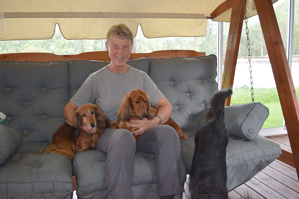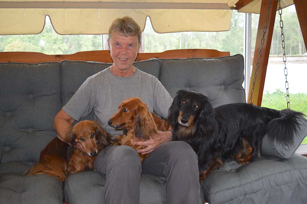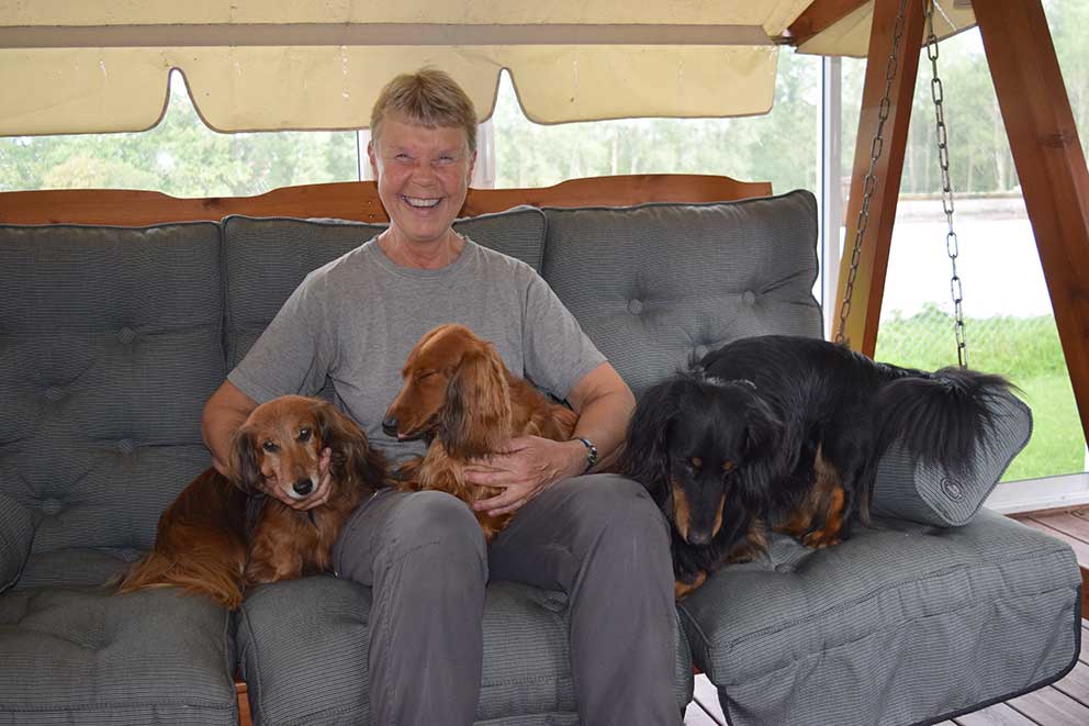 Vi har träffat Marie Jacobsson och hennes fina taxar Xantos, Stella och Sissi på familjens altan hemma i Nässja.