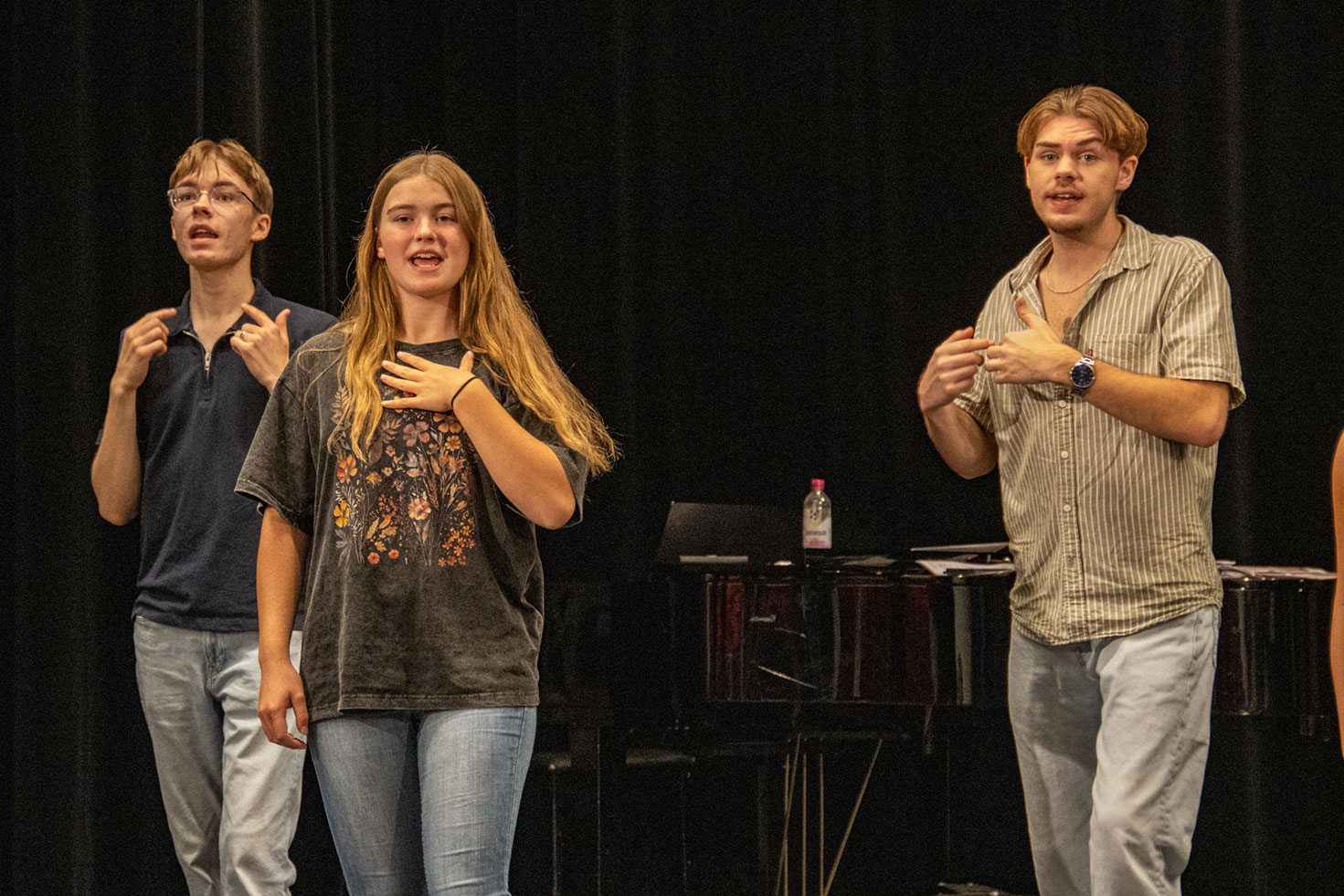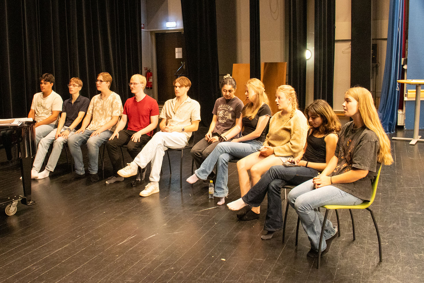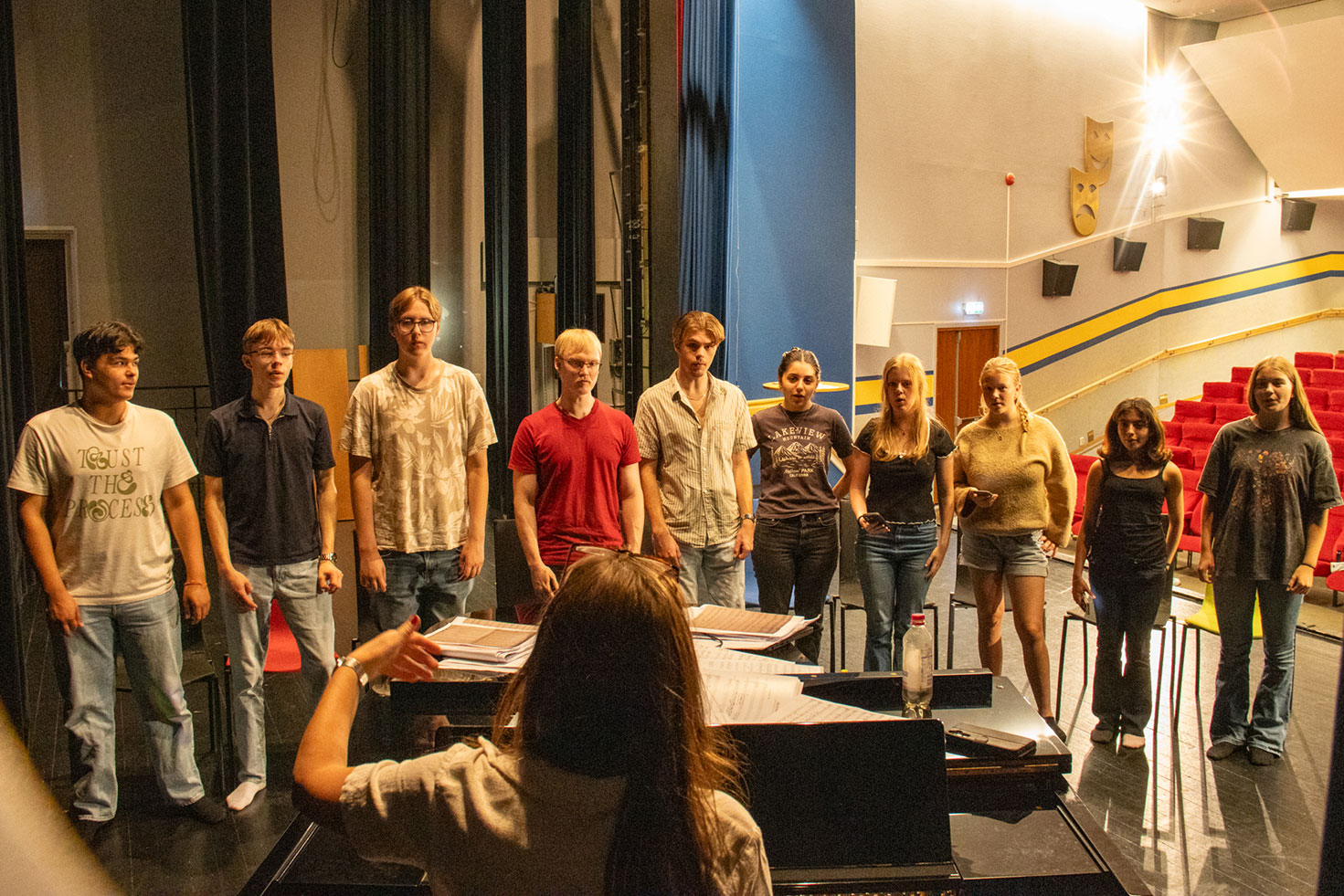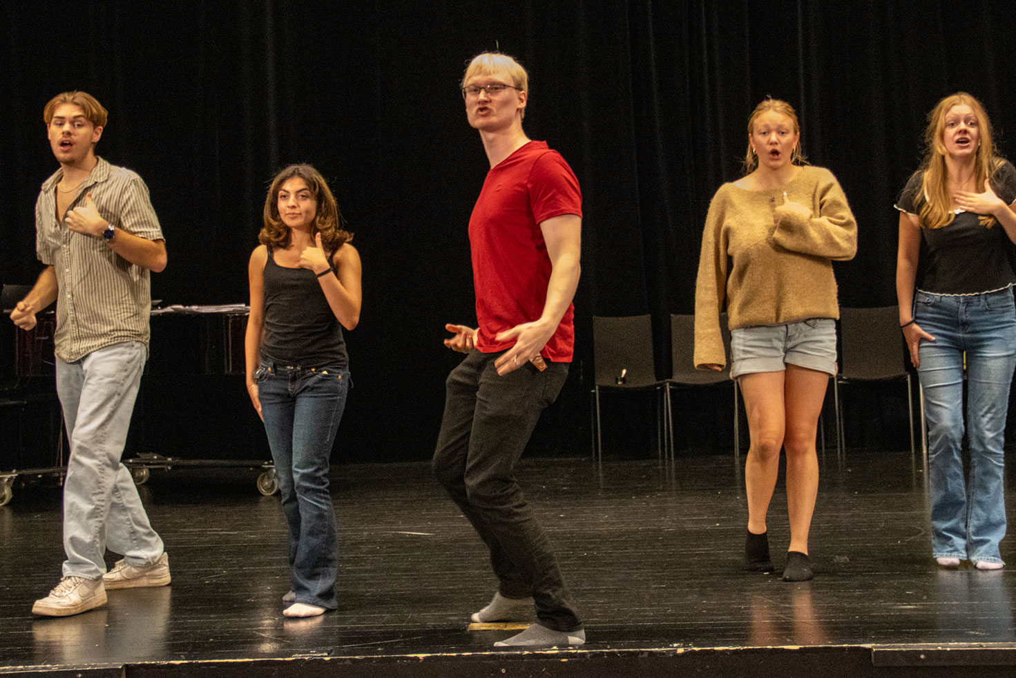Nu är det bara två veckor fram till konserten och man över och finslipar på scenen i teatersalongen i Skillingehus under ledning av Ann-Sofie Fredriksson.