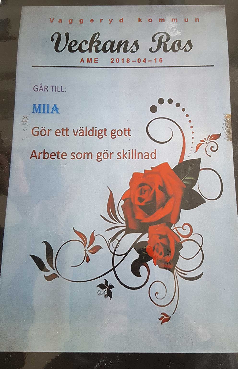 För någon vecka sedan fick hon ”Veckans ros” av sina arbetskamrater för sitt engagemang.