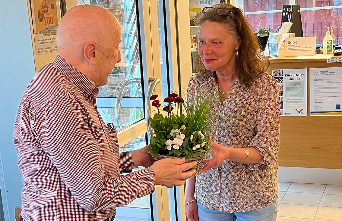 Ola Hugosson fick ta emot en blomsterhyllning, vilken överlämnades av Susanne Wickbom.