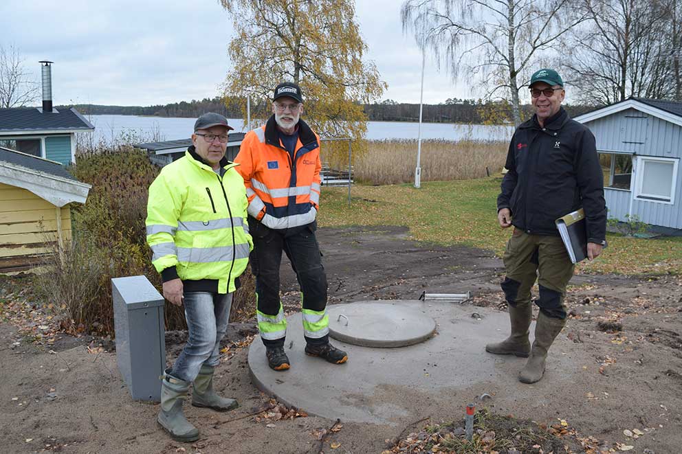 Nästa vecka driftsätts reningsverket och helt klart, och alla stugor inkopplade, beräknar trion med att det är i november eller december månad. Men redan idag går det att använda avloppet.
