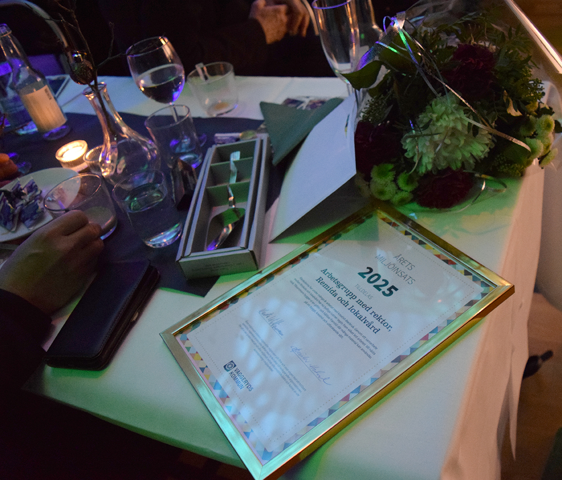Årets Miljöinsats Arbetsgruppen med remida, lokalvård och rektor Tekniska kontorets VA-enhet Kanslienheten team kundtjänst