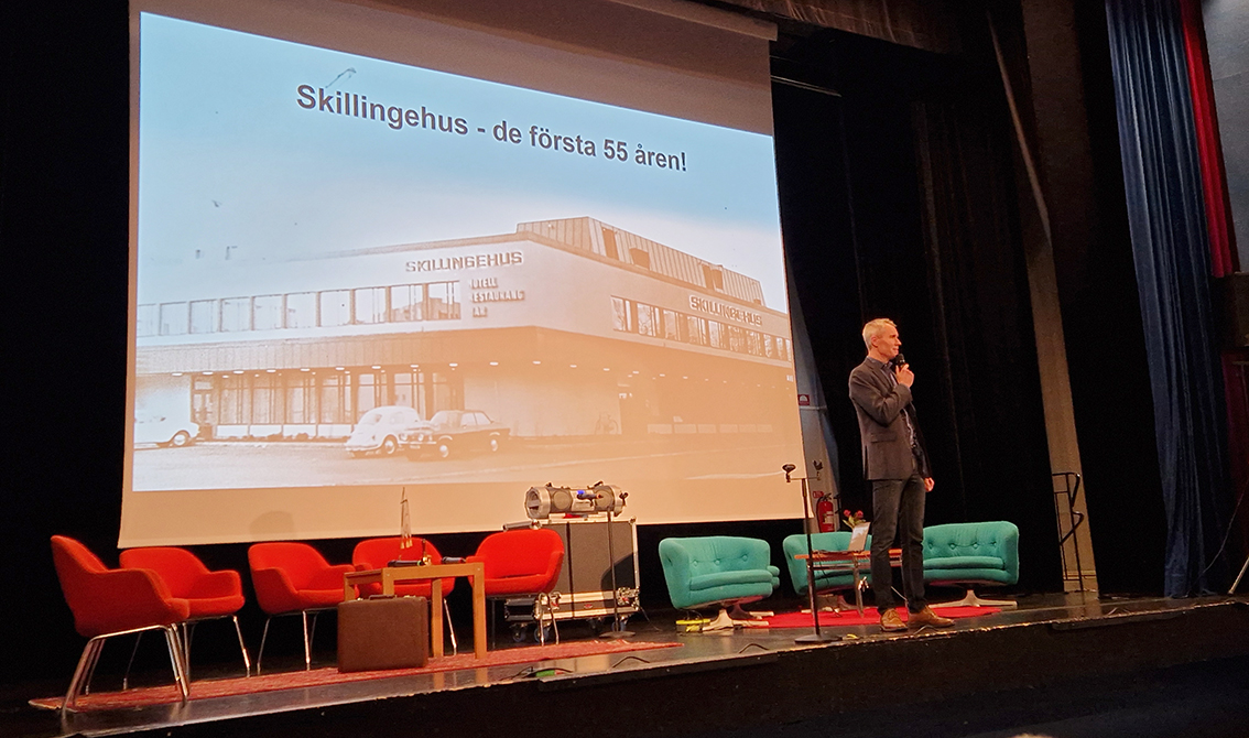 Johan Lundell, kommunens kommunikatör, var kvällens konferencier. – Visst är det sköna stolar här i teatersalongen, är det någon som är här för första gången? Johan fick inga handuppräckningar. Skillingehus och teatersalongen hade alla av kvällens besökare varit i tidigare och i kväll, när de första 55 åren skulle försöka summeras på 1,5 timme som var fylld med minnen, skatt och skratt. Johan Lundell fortsätter: